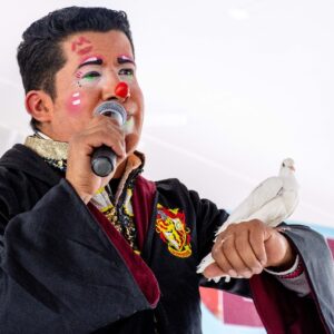 El evento, que atrajo a numerosas familias, también contó con un animado show de payasos que deleitó a los presentes, llenando el lugar de risas y diversión.