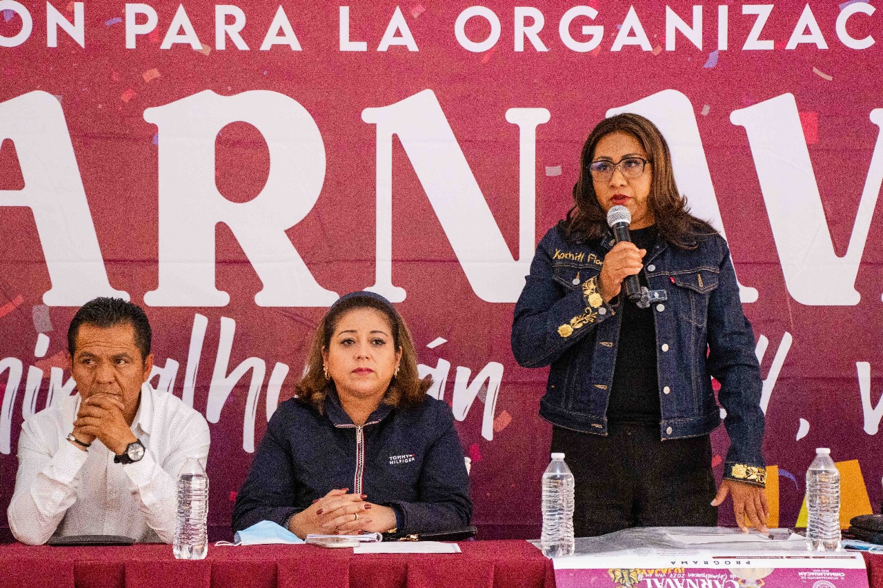“El tema es que cada vez mejoremos nuestro carnaval; deseo que sea todo un éxito para todos quienes damos la cara para que así sea”, manifestó la Presidenta Flores Jiménez al desear éxito a todos, en particular a charros y charras que lucirán –al ritmo de pasos dobles y otros– vistosos trajes hechos por artesanas y artesanos chimalhuaquenses.