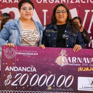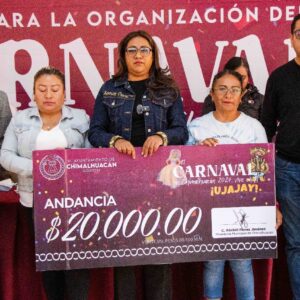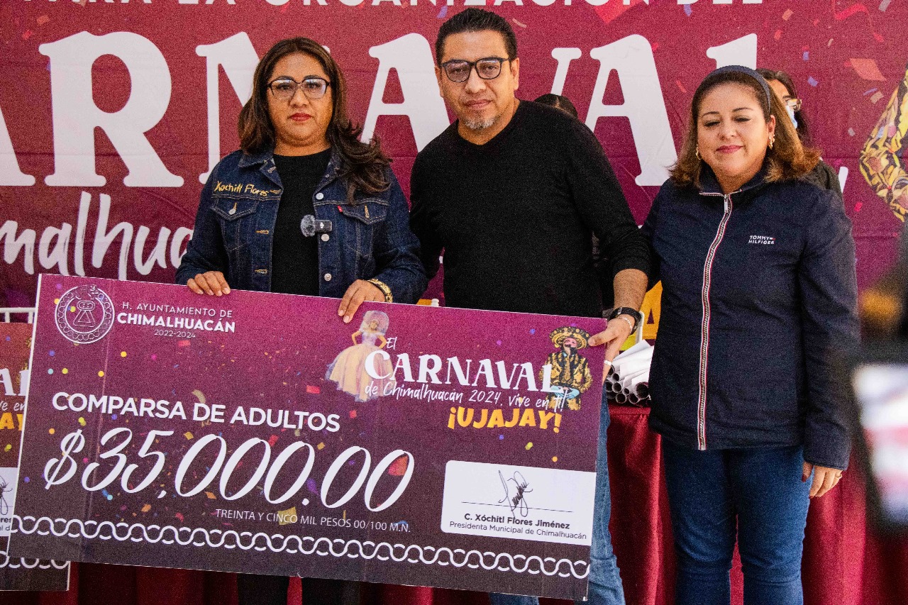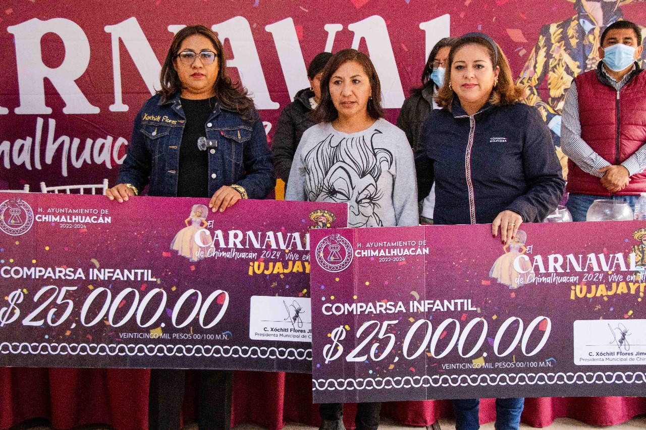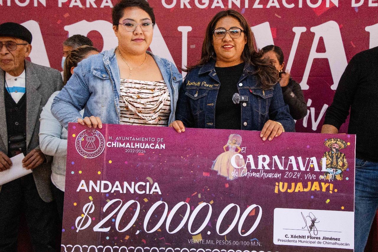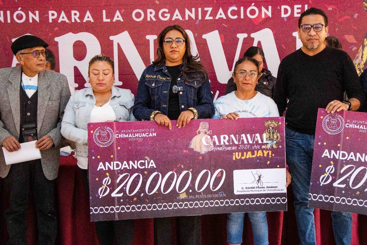 Como parte de sus políticas, programas y acciones para promover la cultura, el turismo y la economía del Municipio, la Presidenta Xóchitl Flores Jiménez entregó por segundo año consecutivo y a nombre del H. Ayuntamiento, apoyos económicos a cerca de 150 grupos de comparsas y andancias que participarán en el “Carnaval de Chimalhuacán 2024 Vive en ti! ¡Ujajay!”