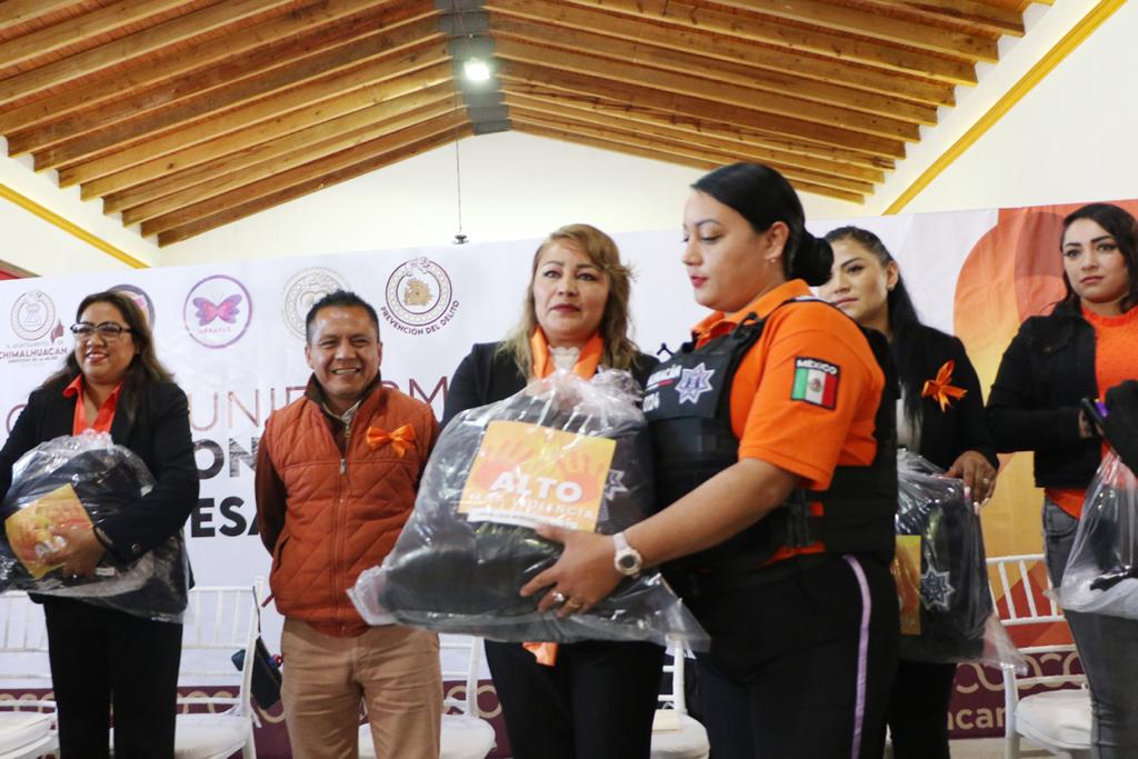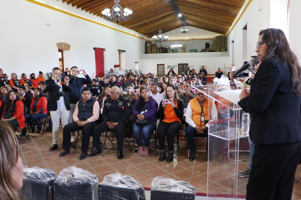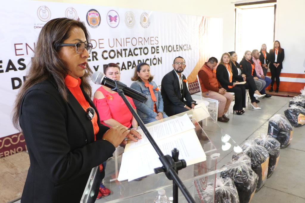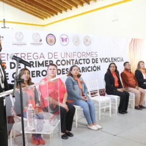 “Seguiremos invirtiendo en su capacitación y equipamiento, de modo que tengan las herramientas necesarias para atender a las víctimas de violencia, tal como lo hemos hecho para quienes laboran en la Dirección de la Mujer y en la Dirección General de Seguridad Ciudadana y Tránsito Municipal”, expresó la Presidenta Flores Jiménez minutos antes de entregar uniformes a elementos de las áreas mencionadas.