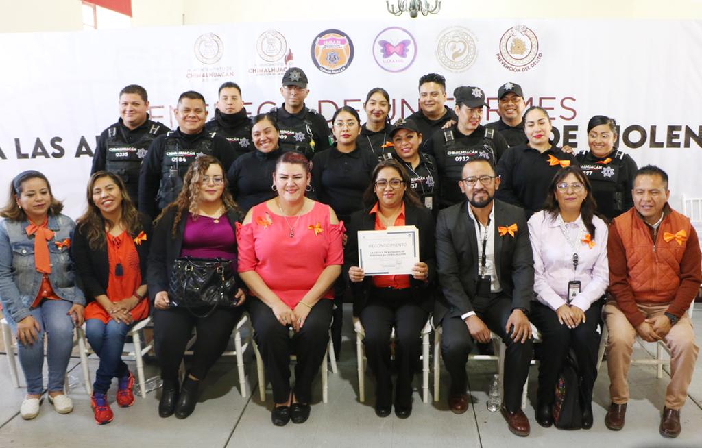 El reconocimiento le fue entregado durante el acto de dotación de uniformes a elementos de Áreas de Primer Contacto de Violencia de Género y Desaparición que encabezó la propia la Presidenta Flores Jiménez en el Museo Chimaltonalli, en el marco del Día Naranja. A todas y todos ellos les valoró su cada vez más eficaz atención en estos casos.
