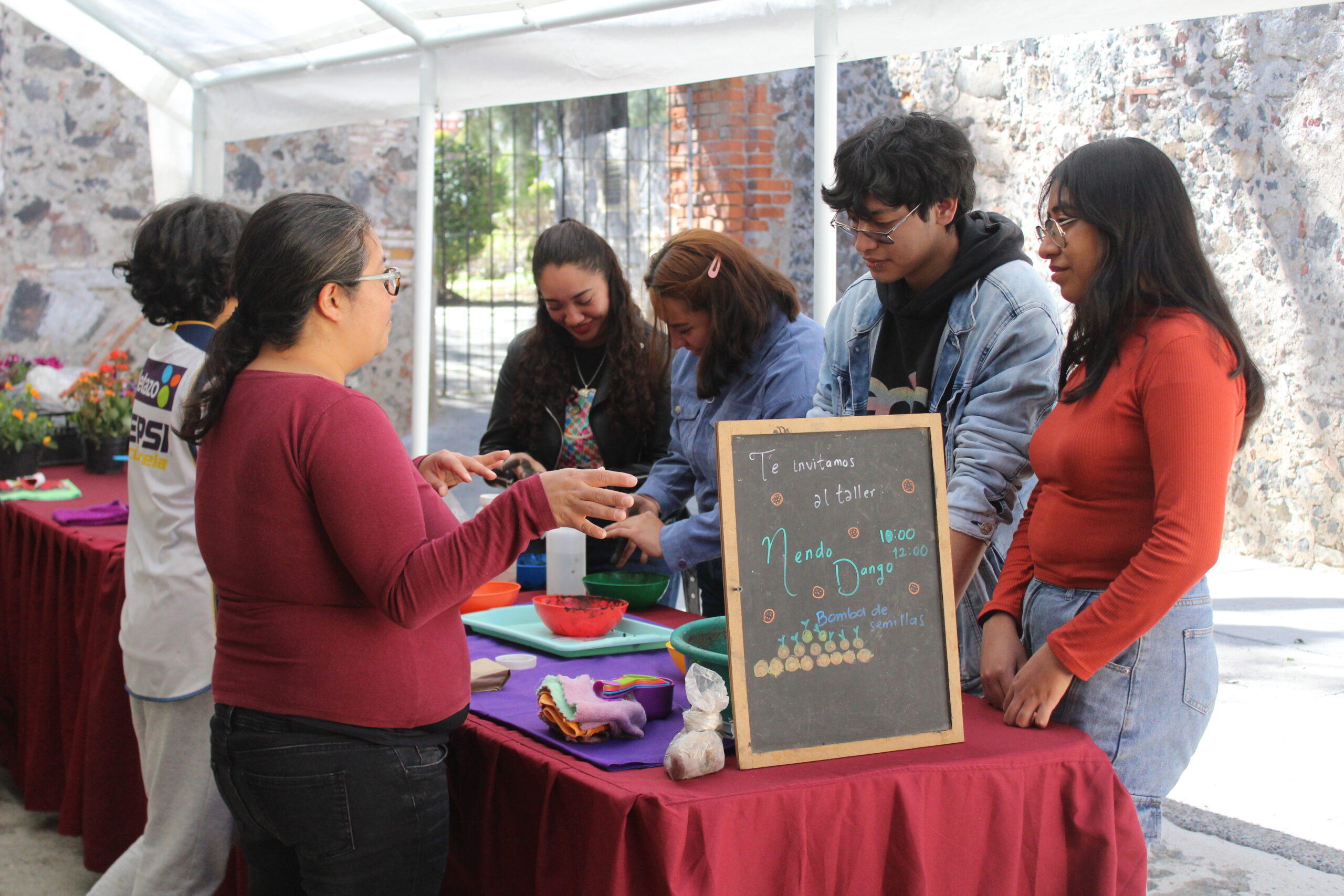 En el taller “Bombas de semillas” se explicó el proceso de impulsar la reforestación a través de bolas realizadas de composta, arcilla o barro negro, semillas nativas del lugar como manfredas, malvas y jaltomate, todo esto revuelto con agua hasta hacer una masilla que se exponga al sol y en los meses de lluvia se aventara en los diferentes lugares a reforestar la tierra.