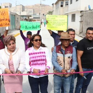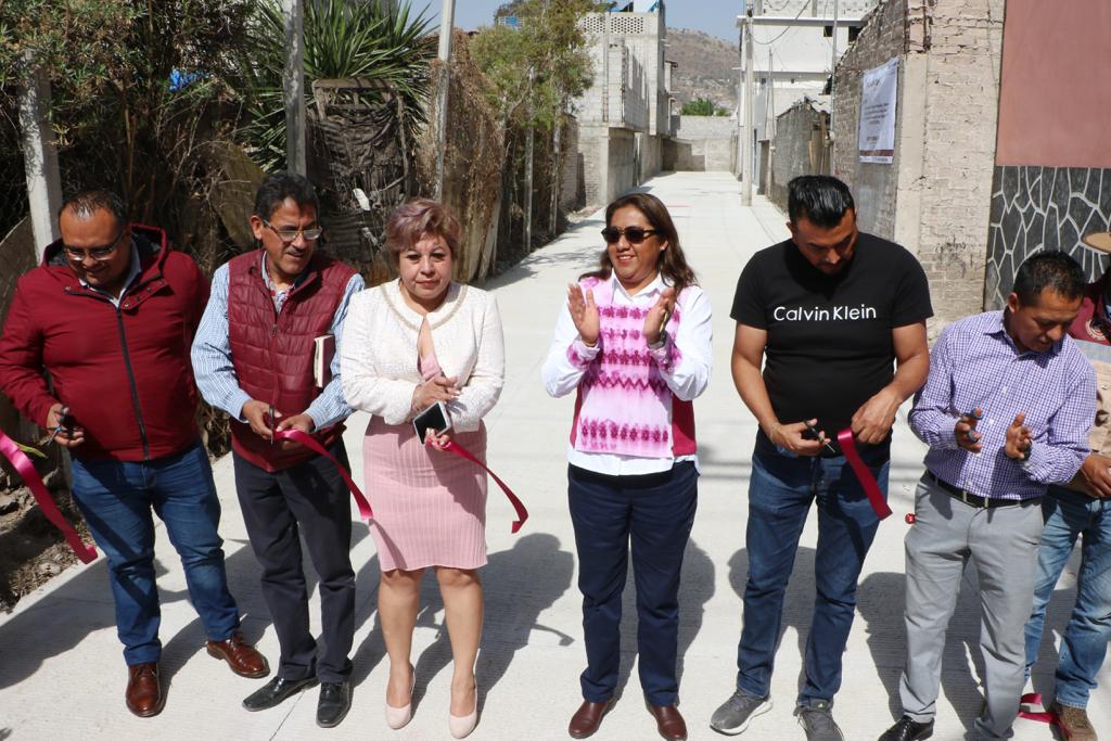 En beneficio directo de cientos de personas, la Presidenta Municipal de Chimalhuacán, Xóchitl Flores Jiménez, entregó dos obras de pavimentación de concreto hidráulico e introducción de drenaje y de red de agua potable a habitantes de la Zona Comunal San Agustín Atlapulco, en específico de la cerrada Sauce (de calle Zacapa a Cadenamiento) y de la calle Jazmín (de calle Zacapa a calle Sauce), con las cuales mejorará considerablemente su calidad de vida.