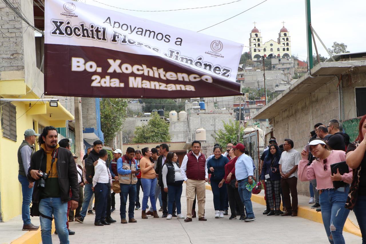 El Gobierno de Chimalhuacán, que encabeza la Presidenta Xóchitl Flores Jiménez, entregó a vecinas y vecinos de cerrada Ciruelos, del Barrio Villa Xochitenco, su pavimentación con concreto hidráulico estampado gracias a una inversión del Fondo para la Infraestructura Social Municipal y de las Demarcaciones Territoriales del Distrito Federal (FAISMUM) 2023.