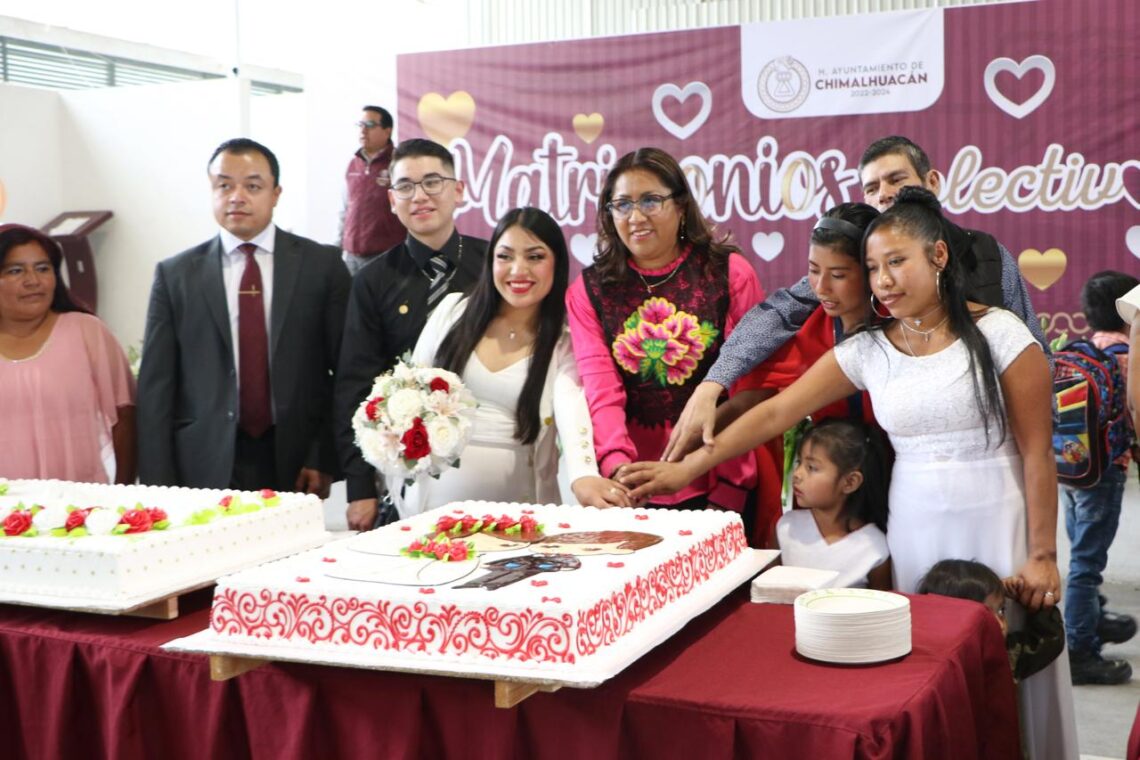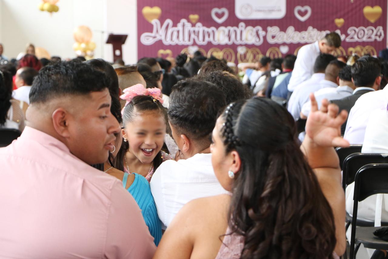 Entre sonrisas, lágrimas de felicidad, promesas, pasteles, regalos y música romántica, 320 parejas de Chimalhuacán contrajeron matrimonio civil al decirse: “Sí, acepto”, en el evento “Matrimonios Colectivos 2024”, llevado a cabo en el Salón de Usos Múltiples del Parque Lineal “Ameyalco”, con la participación de autoridades municipales y estatales.