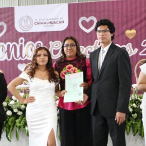 “Al dar certeza jurídica a la unión de una pareja, afirmamos nuestro compromiso de salvaguardar a nuestras familias y garantizar su bienestar. Y esto es precisamente lo que buscamos con este evento: ofrecer un trámite gratuito que permita consolidar la unión de las parejas mediante su formalización en el Registro Civil”, expresó la Presidenta de Chimalhuacán.