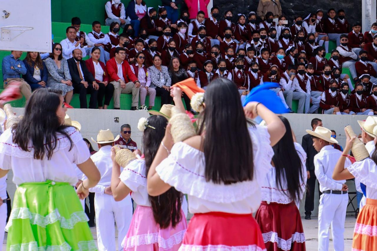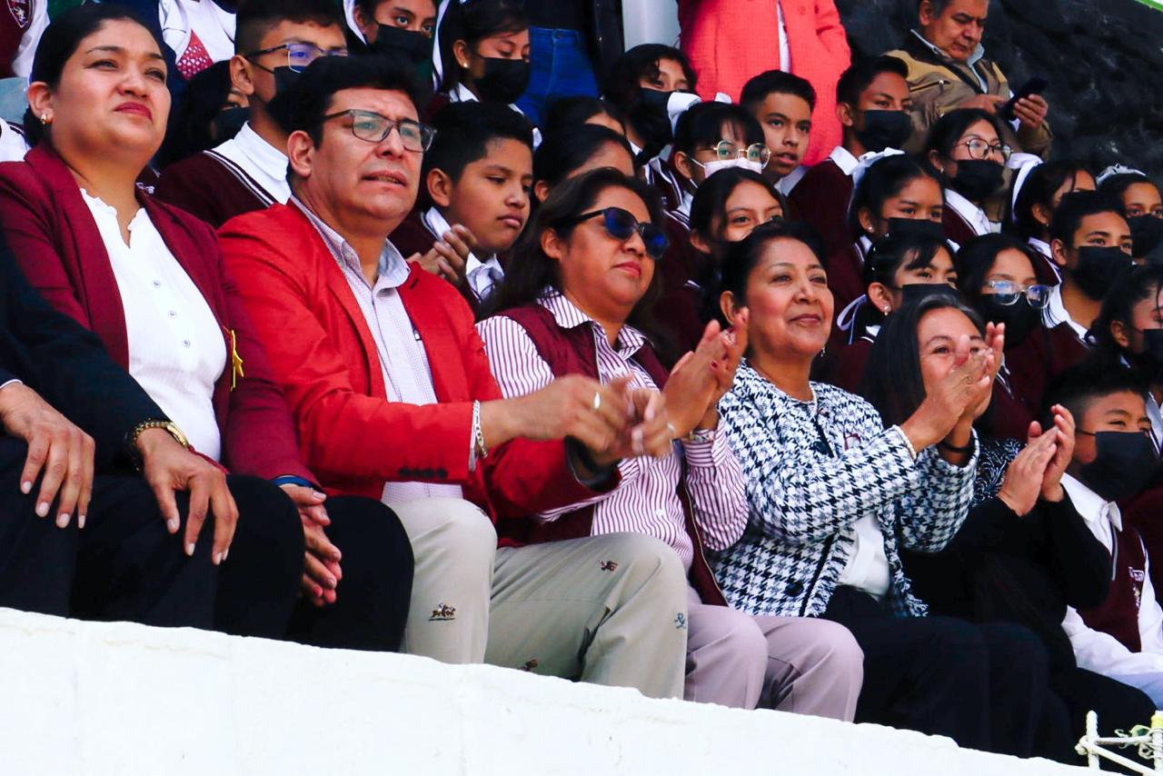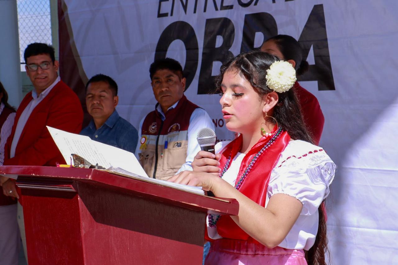 “Para tener este espacio tan hermoso tuvimos que hacer solicitudes a instancias gubernamentales. La respuesta fue de nuestras autoridades municipales encabezadas por una mujer que ejerce su liderazgo por el bienestar de su pueblo y, por supuesto, de los alumnos que serán ciudadanos responsables y comprometidos con su patria gracias a la educación. Es ella quien autorizó estos trabajos. Me refiero a nuestra querida Presidenta, la Ciudadana Xóchitl Flores Jiménez”, dijo la directora del Turno Matutino, Antonia Imelda Arrieta Reynoso.