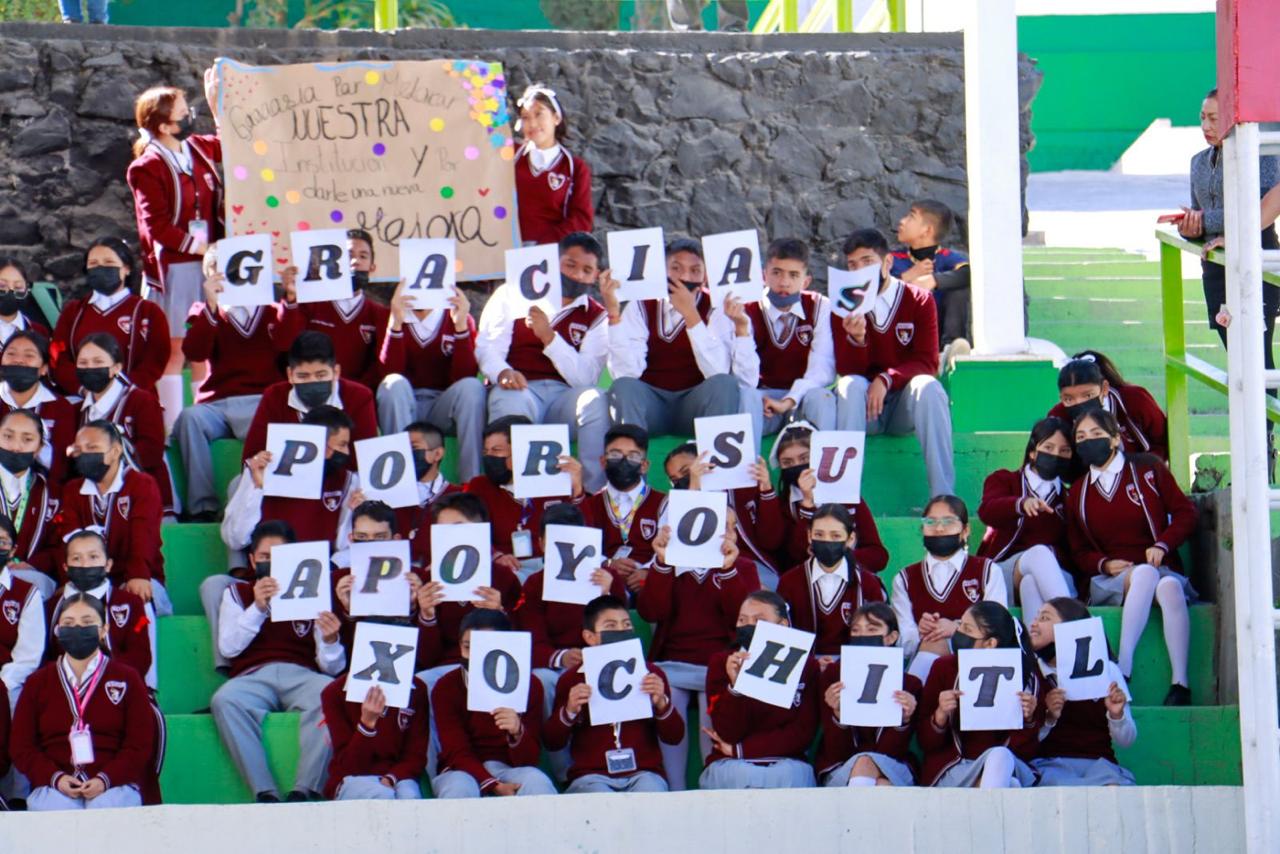 Con el afán de que el compromiso con la educación del actual Gobierno Municipal se fortalezca, la comunidad académica de la Escuela Secundaria Oficial 0016 “Juan José de los Reyes El Pípila”, expresó su decidido apoyo a la Presidenta Xóchitl Flores Jiménez luego de que ella entregó en este plantel obras por más de 4 millones de pesos.