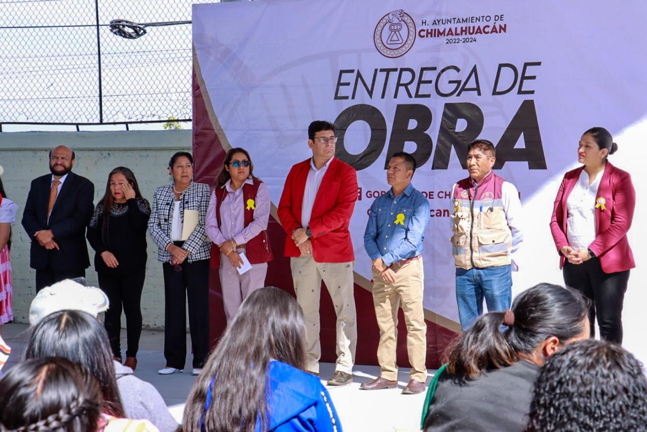 BENEFICIARIOS DE OBRAS EN ESCUELAS CELEBRAN QUE PROYECTO DE FLORES JIMÉNEZ EN CHIMALHUACÁN ATIENDA SUS NECESIDADES