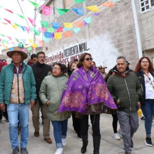 La Alcaldesa Flores Jiménez recordó que en el pasado se le obligaba a la población a marchar y hacer plantones para pedir una obra que, en muchos casos, no se llevaba a cabo y cuando se realizaba, le cobraban la mano de obra a los vecinos. “Hoy, las cosas han cambiado por la confianza que depositaron ustedes en nosotros, hoy estamos administrando bien los recursos y por eso también tenemos programas sociales municipales como el de canastas alimentarias “Alimentación con Igualdad” y el de apoyo a estudiantes por el regreso a clases “Transformando la Educación con Igualdad”.