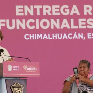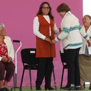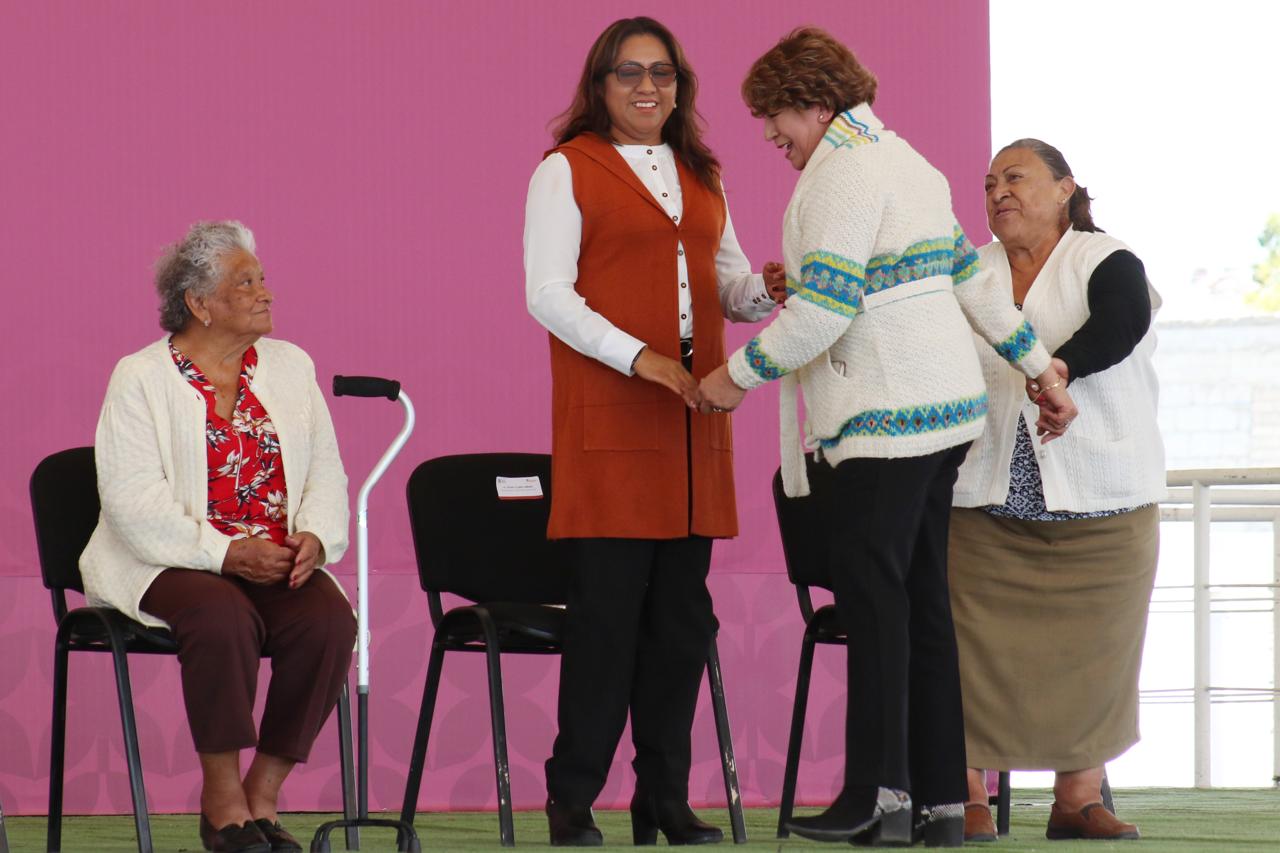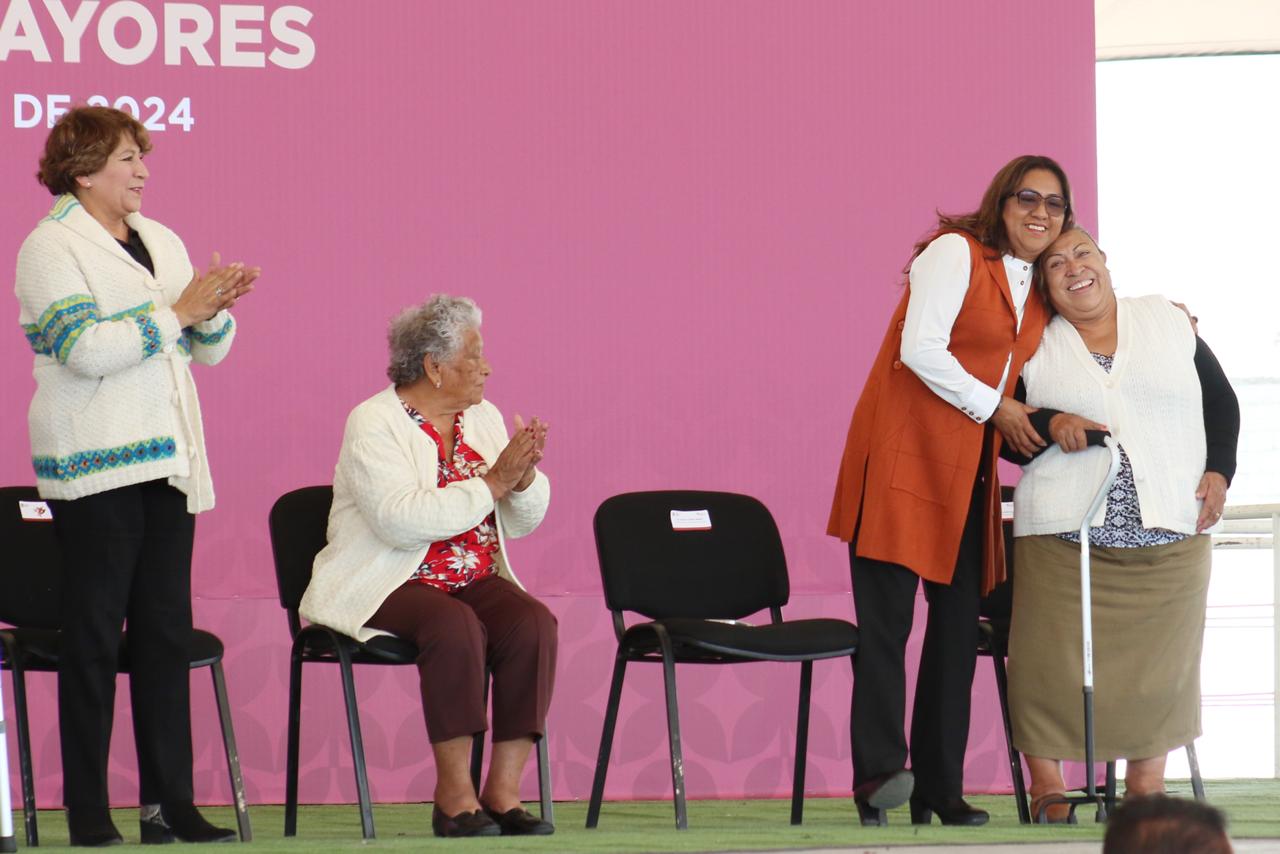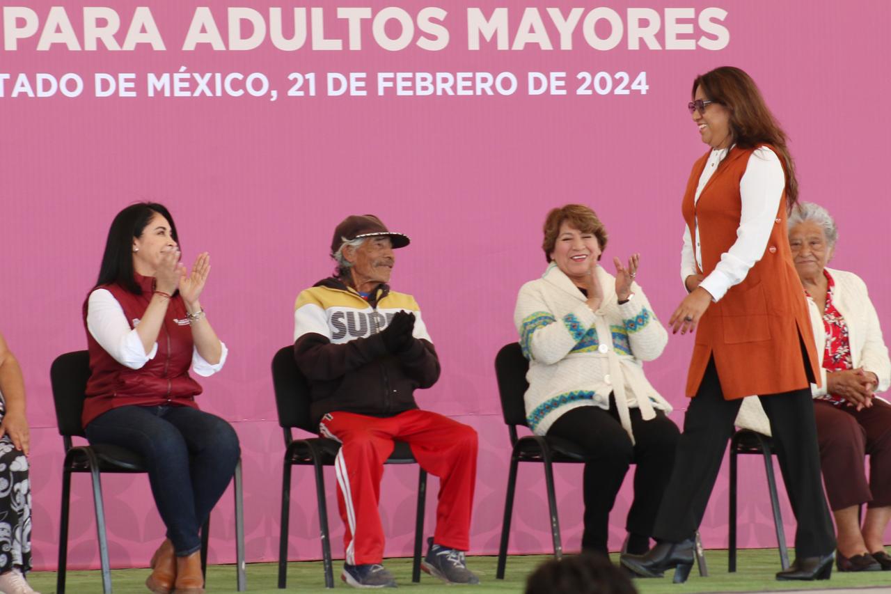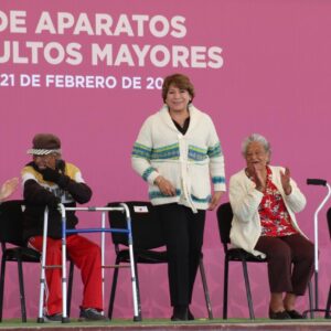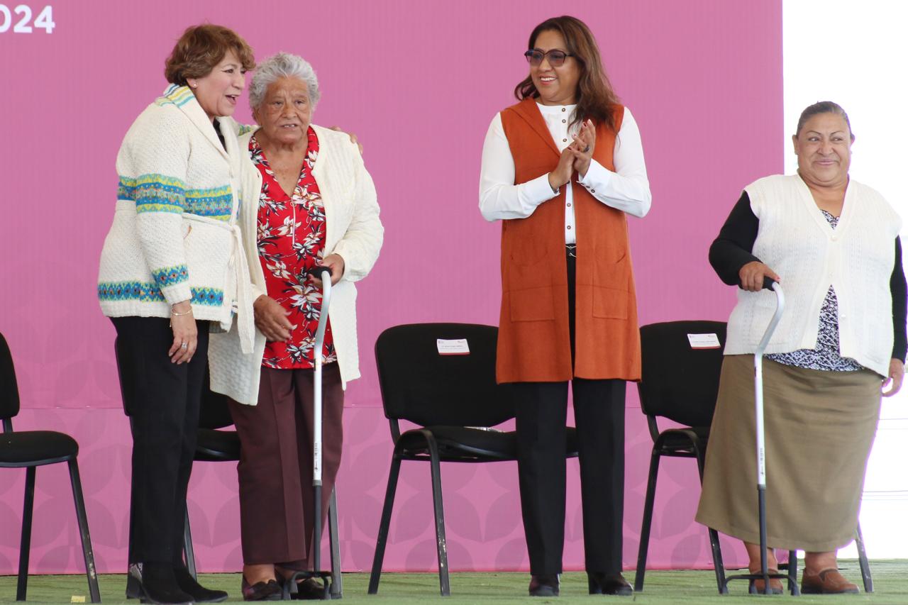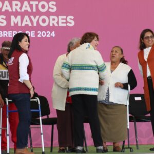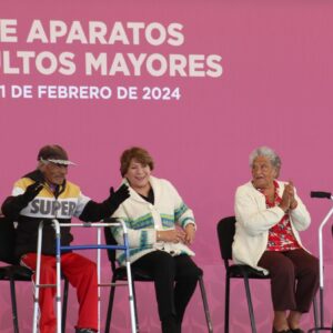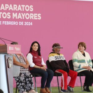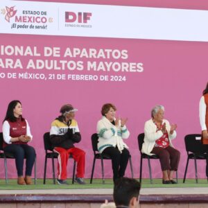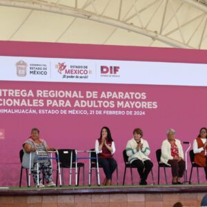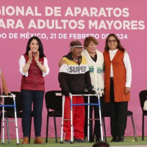 En compañía de la Presidenta Municipal de Chimalhuacán, Xóchitl Flores Jiménez, y de la Directora General del Sistema Estatal para el Desarrollo Integral de la Familia del Estado de México (DIFEM), Karina Labastida Sotelo, la Gobernadora Delfina Gómez Álvarez entregó 919 aparatos funcionales a adultos mayores de 25 municipios del Estado, en el Recinto Ferial de la localidad. El objetivo de la entrega de aparatos, dijo la Gobernadora, es apoyar y facilitar a los adultos mayores el acceso a una mejor calidad de vida, pues conforman una población que no solo necesita un aparato o recursos, sino que también requiere atención, visibilización y respeto.
