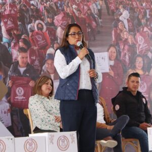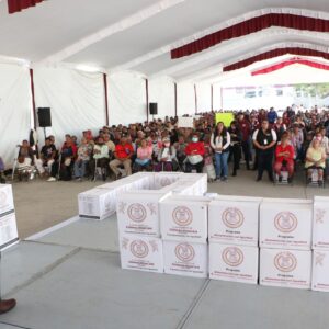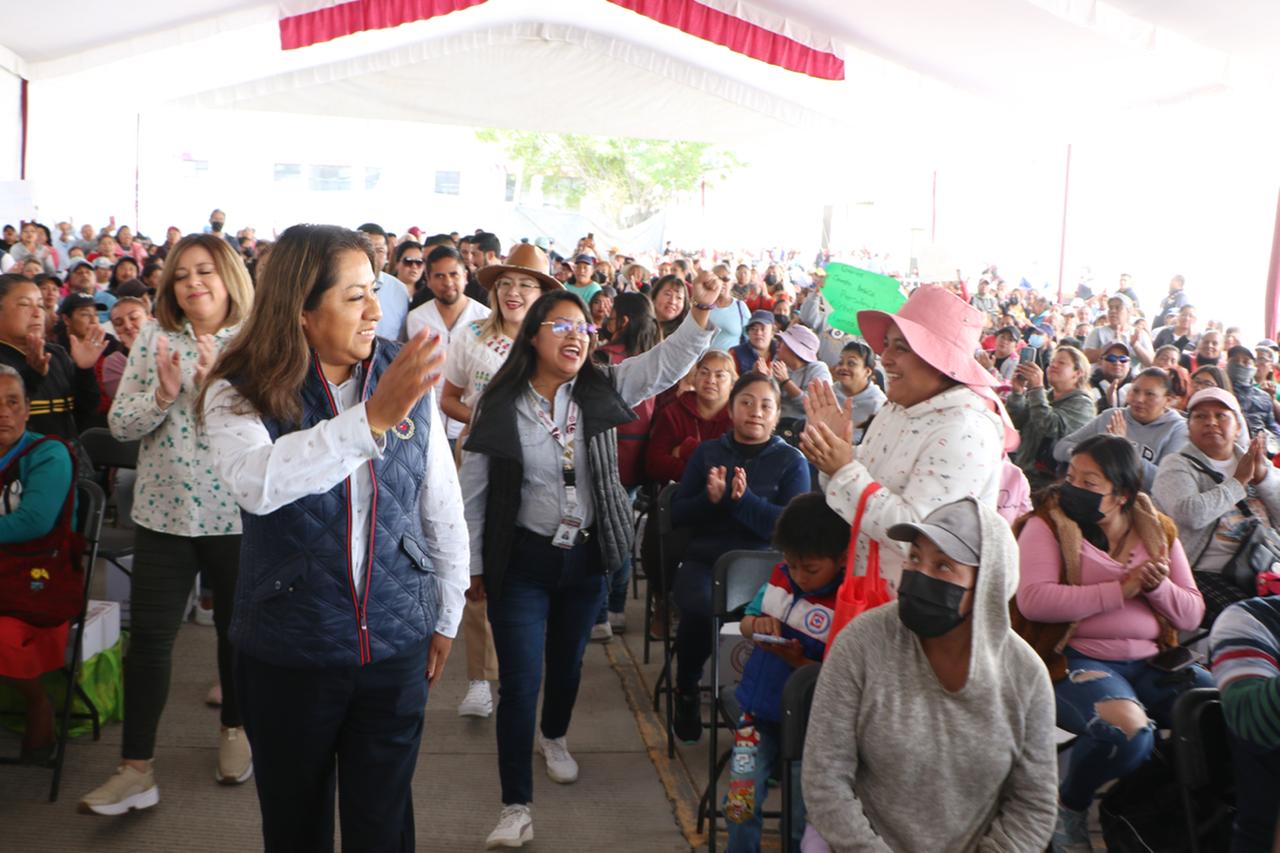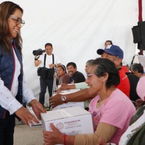 En las entregas de la mañana y la tarde, un total de mil 507 vecinos recibieron una canasta alimentaria en las instalaciones de la Subestación de Bomberos del Ejido de Santa María Chimalhuacán, a quienes la Presidenta Xóchitl Flores expresó que siempre es un gusto volver a los Ejidos. “Ustedes son testigos de las obras que estamos realizando aquí, ¿están viendo el cambio?”, preguntó, a lo que cientos de asistentes respondieron afirmativamente.