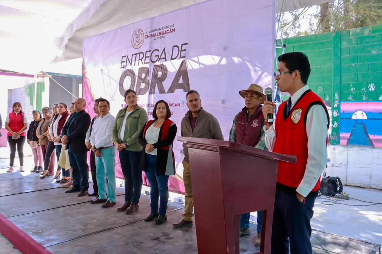 En representación de la Presidenta Municipal y entre aplausos de reconocimiento por parte de la comunidad escolar, inauguraron la obra el Primer Síndico, Faustino Méndez Lázaro, y los regidores Adán Vargas Santiago, Guadalupe Reynoso Flores, Beatriz Cuevas Mendoza y Socorro Vilchis Sánchez, así como la Directora de Educación, María del Pilar Piña Trejo, y el Coordinador de Obras, Juan García González.