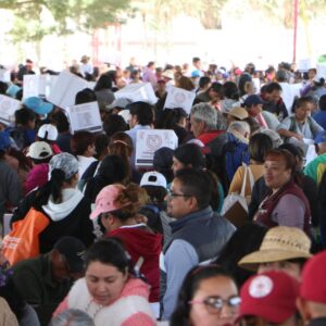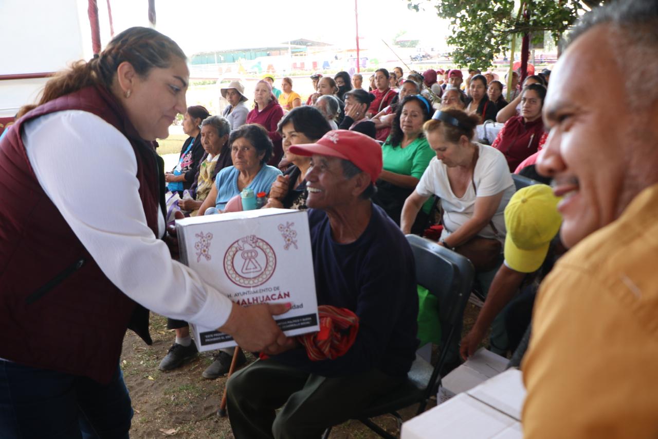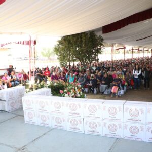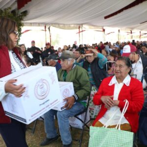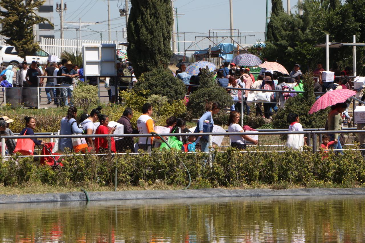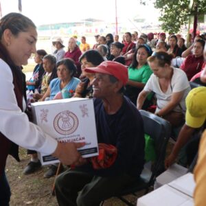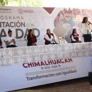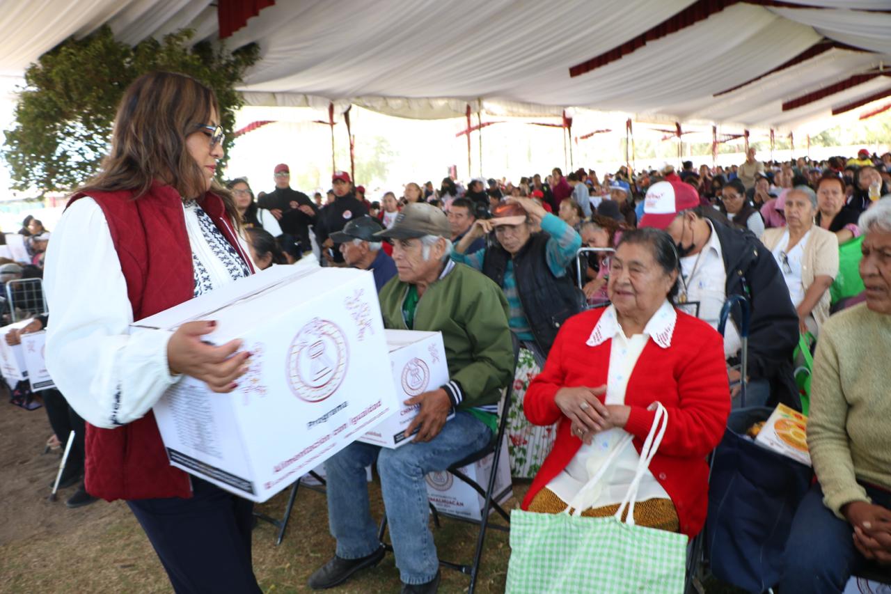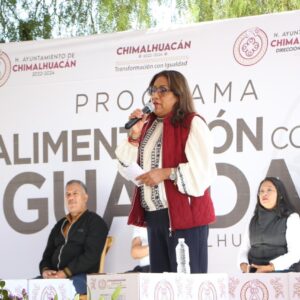 Al entregar 3 mil 46 canastas alimentarias a vecinos de 24 comunidades del municipio que se dieron cita en las instalaciones del Parque Ecoturístico “El Chimalhuache”, la Presidenta de Chimalhuacán, Xóchitl Flores Jiménez, expresó que este año su administración realizará más obras, servicios y programas en beneficio de la población chimalhuaquense.