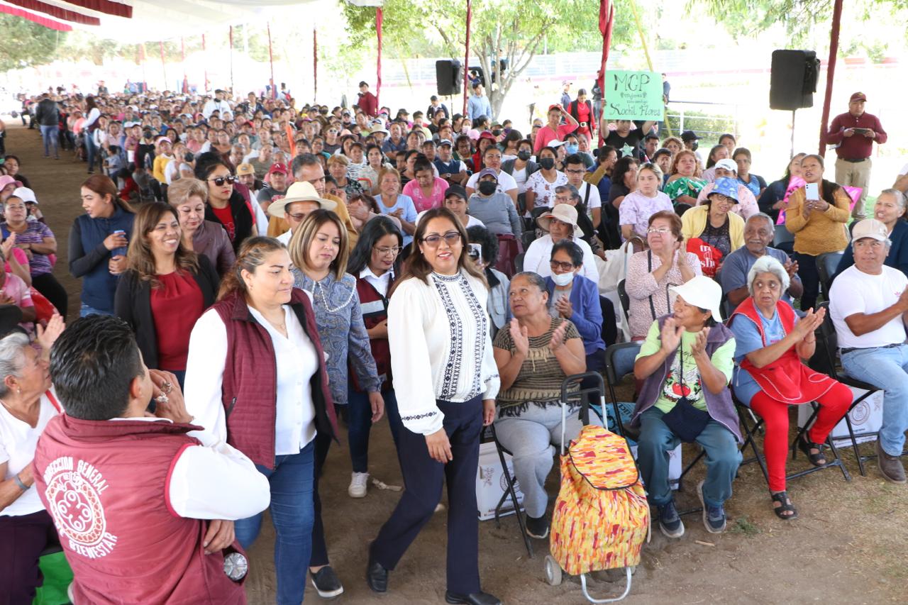 Ante vecinos de barrios y colonias como Xochiaca, Xochiaca Parte Alta, Xochitenco, Lomas de San Isidro, entre otros, la Presidenta Flores Jiménez informó que también entregó obras de pavimentación, introducción de drenaje y agua potable, así como de construcción de techumbres, aulas, módulos sanitarios, entre otras, en las escuelas públicas que más lo necesitan. “Recordemos cómo antes, para hacer una gestión, había que ir a marchas, hoy eso ya no es necesario. Hemos invertido cada vez más en servicios y lo seguiremos haciendo. También hay que señalar que estas obras no les cuestan ni un peso, ya no tienen que pagar la mano de obra o el material como antes”, destacó indicó.
