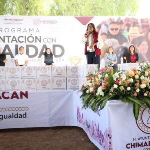 En el tercer día de entregas matutinas y vespertinas del programa municipal “Alimentación con Igualdad”, la Presidenta Flores Jiménez celebró que los miembros del H. Cabildo hayan tenido a bien ratificar la continuidad de los programas municipales “Alimentación con Igualdad”, que consta de la entrega trimestral de despensas a familias vulnerables del municipio, y del programa “Transformando la Educación con Igualdad”, dirigido a estudiantes de educación básica –preescolar, primaria y secundaria–, con el cual reciben un apoyo económico para complementar los gastos del regreso a clases.
