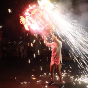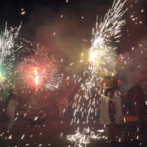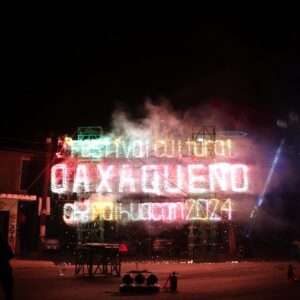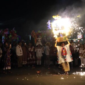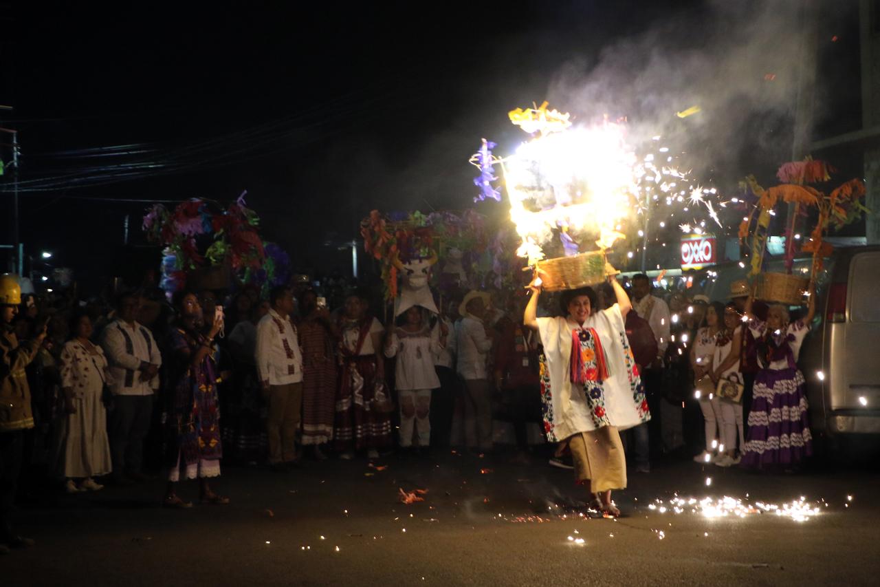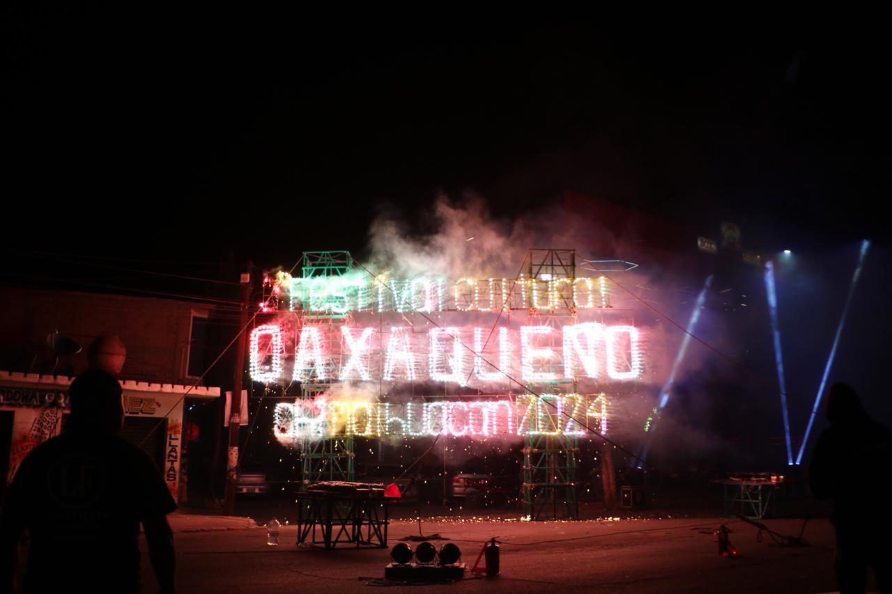 La Calenda partió de la calle Anantli esquina Av. de las Torres, sobre esta última avenida, para detenerse en calle Cehuan donde tuvo lugar un espectáculo piromusical y encendido de toritos, y después continuar rumbo a la Plaza Cívica Benito Juárez, donde abrió el “3er.Festival Cultural Oaxaqueño Chimalhuacán 2024” con la representación de delegaciones de las ocho regiones de Oaxaca.