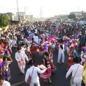 Por tercer año consecutivo, el “Festival Cultural Oaxaqueño Chimalhuacán 2024” en su tercera edición inició con un recorrido de la Calenda por diferentes avenidas del municipio de Chimalhuacán encabezado por las chilenas oaxaqueñas con trajes tradicionales, tiliches y marmotas de las diferentes regiones, que avanzaron al son de la música de banda de viento hasta llegar a la Plaza Cívica Benito Juárez, del Barrio Vidrieros, donde tendrá lugar del 21 al 24 de marzo.