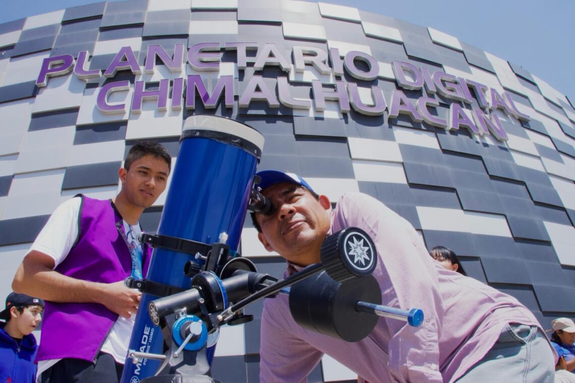 Con gran expectación, cientos de personas se congregaron en las instalaciones del Planetario Digital de Chimalhuacán para observar el eclipse solar.