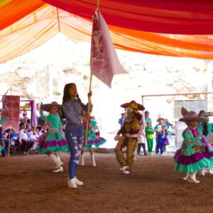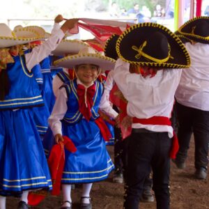 Las comparsas infantiles y de estudiantes bailaron al ritmo de virginias y pasos dobles temas como “Las de San Pedro”, “Inspiración de mi alma”, “Vestida de color de rosa”, “El alacrán”, “El zapatito”, entre otras, compuestas por músicos y orquestas de Chimalhuacán.
