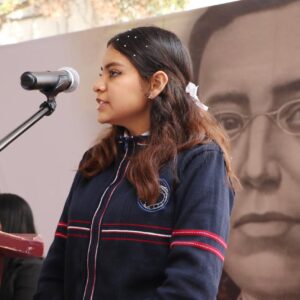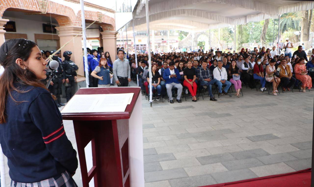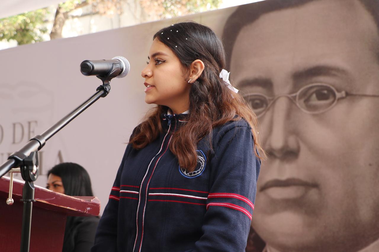 Durante la ceremonia, la alumna Leticia Jiménez Muñoz, en representación de la Escuela Preparatoria 75, expuso la reseña histórica titulada “Honor y Valentía de los Mexicanos a 162 Años”.