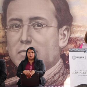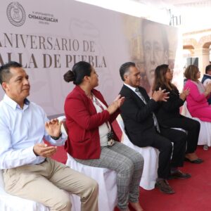 Al conmemorar el CLXII aniversario de la Batalla de Puebla, la Presidenta Municipal de Chimalhuacán por Ministerio de Ley destacó la importancia histórica de esta fecha y subrayó que la Batalla de Puebla “no solo fue un enfrentamiento bélico, sino un testimonio del espíritu indomable de una nación determinada a proteger su soberanía ante intereses foráneos”.