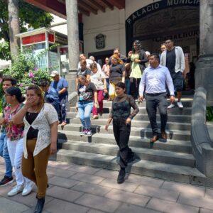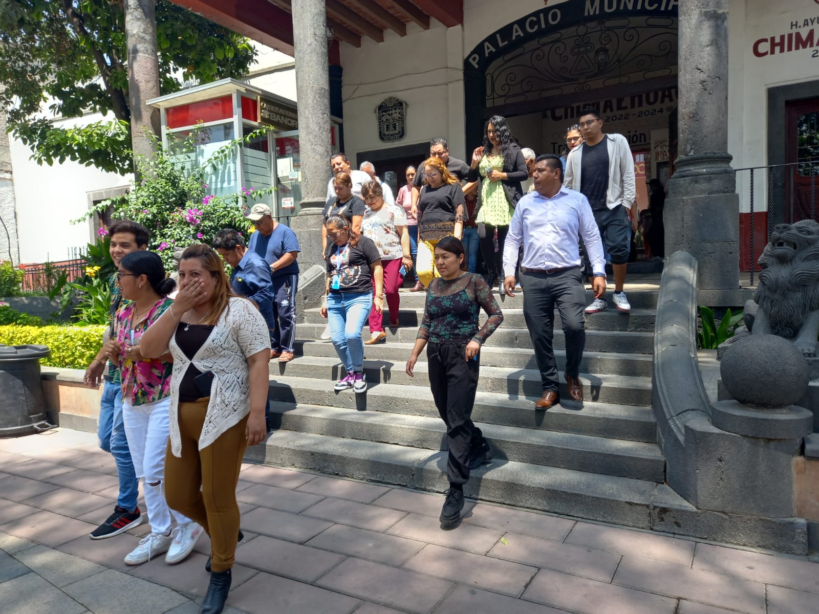 Del Palacio Municipal salieron 90 personas, en un promedio de dos minutos 26 segundos, entre servidores públicos y población flotante que había acudido a realizar algún trámite o servicio.