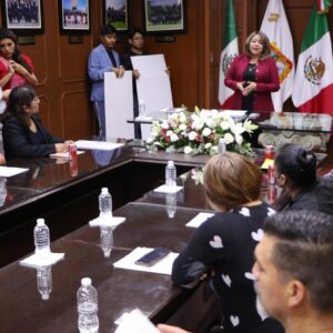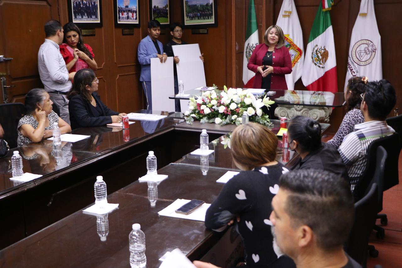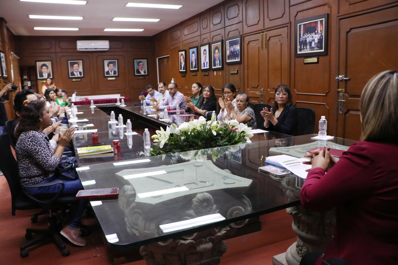 En la Sala de Cabildo del Palacio Municipal, donde se llevó a cabo la reunión y entrega de cheques simbólicos, la Presidenta Municipal de Chimalhuacán por Ministerio de Ley expresó a los asistentes su disposición en continuar trabajando de la mano con el SUTEYM.