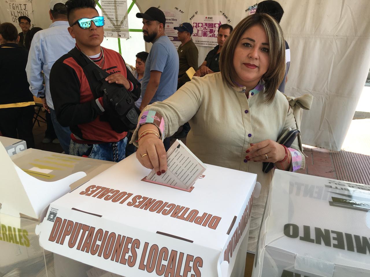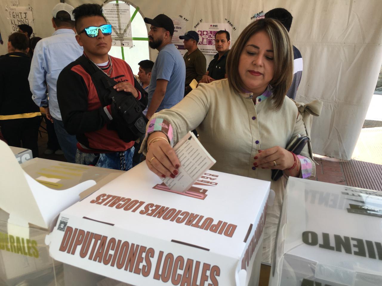 En el marco de la jornada electoral de este domingo, la Presidenta Municipal de Chimalhuacán por Ministerio de Ley, Guadalupe Isabel Reynoso Flores, acudió a emitir su voto a la casilla de la sección electoral 1213, ubicada en calle Ignacio Zaragoza s/n, Cabecera Municipal, correspondiente al Distrito Local 3.