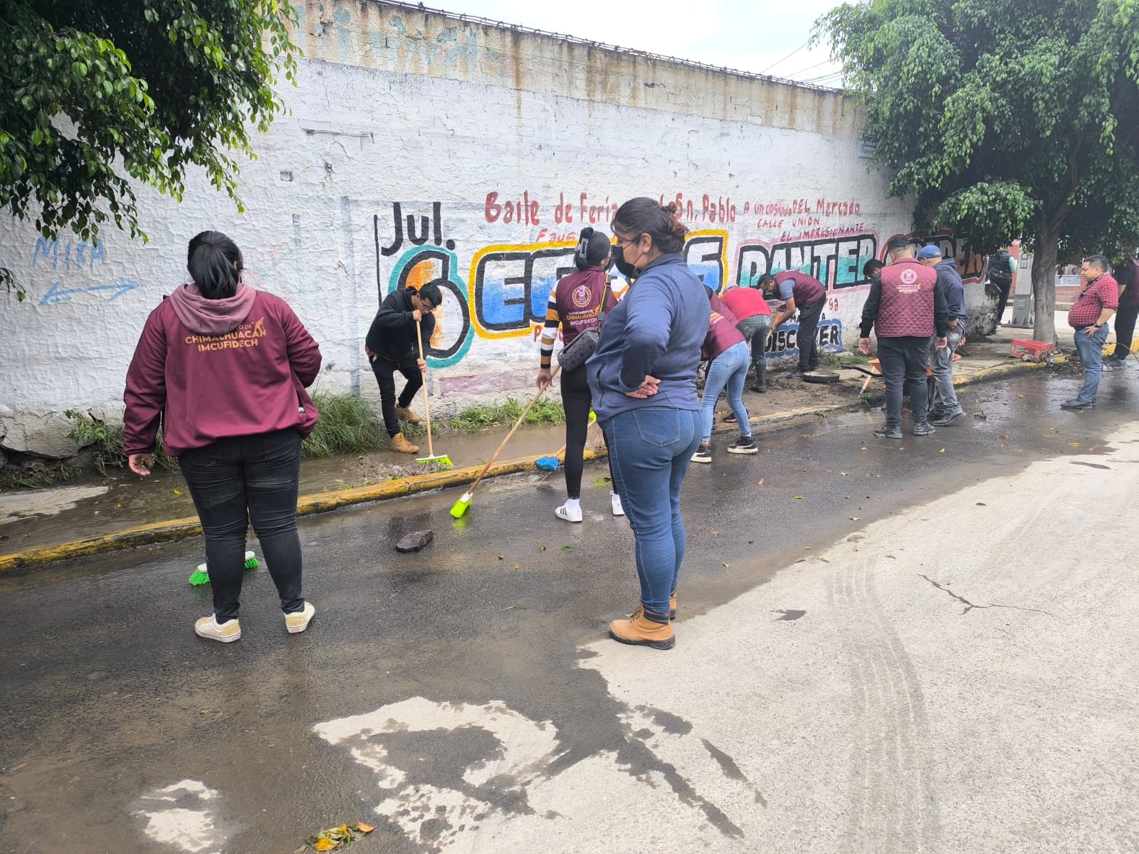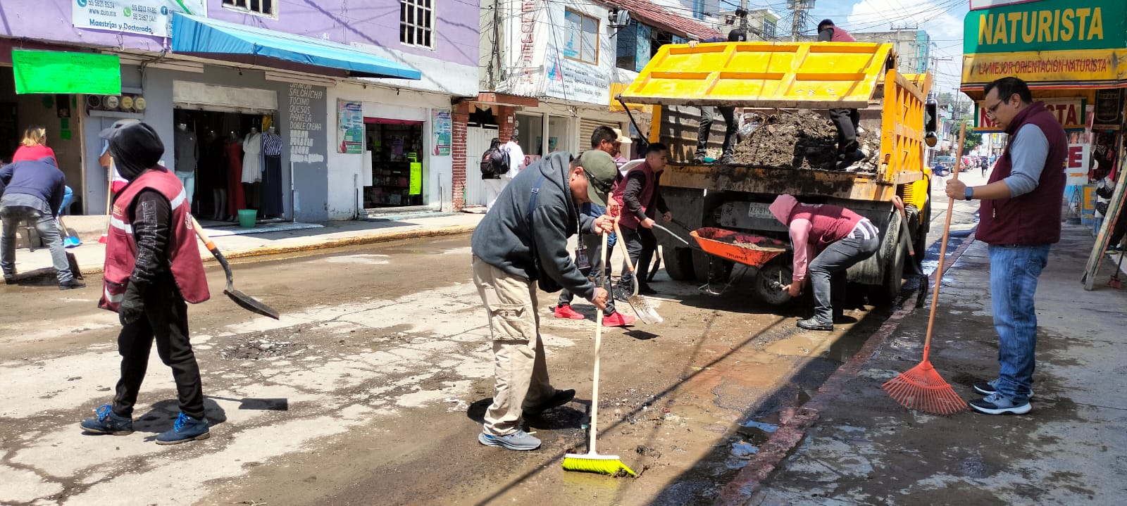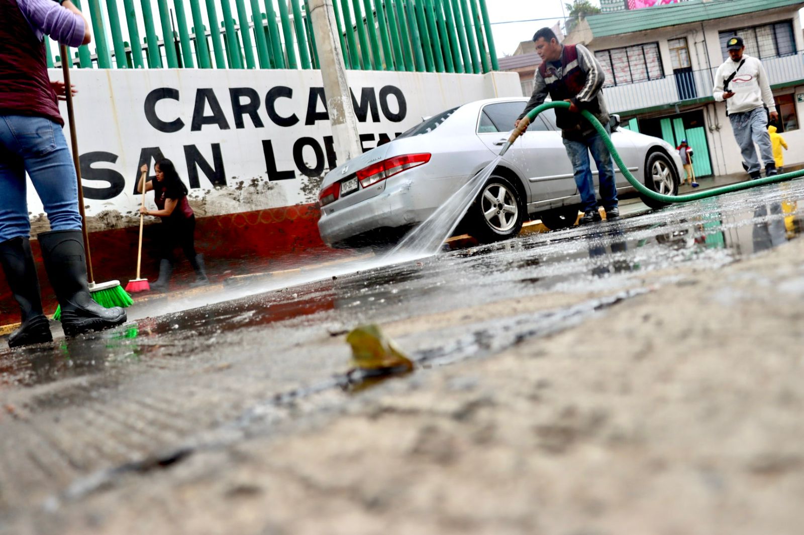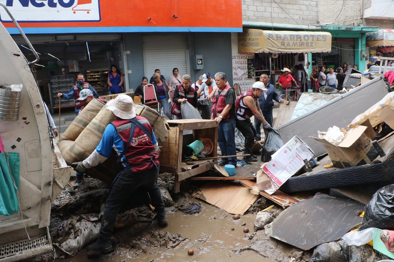 En las distintas zonas ya se encontraban trabajando miembros del Comité Municipal de Emergencias, integrado por las direcciones de Protección Civil y Bomberos, Seguridad Ciudadana y Tránsito Municipal, Obras Públicas, Desarrollo Urbano, Servicios Públicos, Salud, Comunicación Social, ODAPAS y DIF Municipal. Los trabajos de limpieza se realizan de manera coordinada con los vecinos del municipio e instancias de los gobiernos estatal y federal, como la Junta de Caminos, la Comisión del Agua y la Comisión Nacional del Agua.