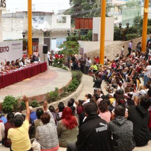La Presidenta Municipal de Chimalhuacán, Xóchitl Flores Jiménez, acompañada por los integrantes del Honorable Cabildo, recibió y respondió las peticiones y propuestas ciudadanas de vecinos del barrio San Lorenzo y otras localidades del municipio, los cuales se registraron previamente para participar en la Décimo Tercera Sesión de Cabildo Abierto, efectuada en el Teatro al Aire Libre “In Cuicatl, In Huilotl” (antes Teatro al Aire Libre “Las Palomas”).