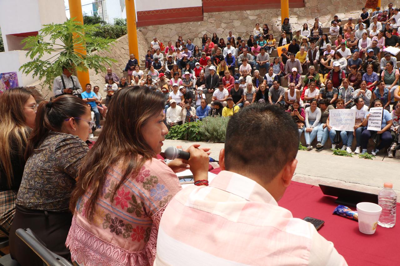 La vecina Graciela García solicitó a los integrantes del H. Cabildo continuar con las pavimentaciones de vialidades del Cerro “Las Palomas”, así como con la introducción de drenaje sanitario. La Presidenta Xóchitl Flores contestó que ya se trabaja en la próxima pavimentación de las calles Benito Juárez, Jilgueros y Melchor Ocampo, así como en la construcción de espacios recreativos para la comunidad, por lo que solicitó que la población se organice para que se construya lo que más quiera y le convenga a la comunidad, como un parque, una casa de cultura u otra obra.