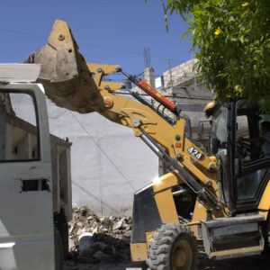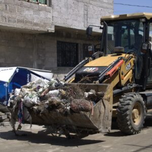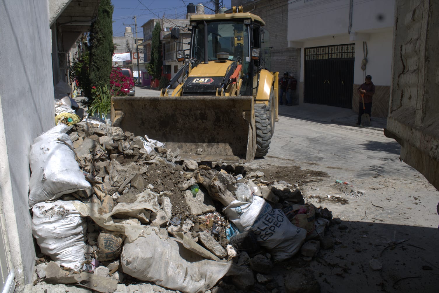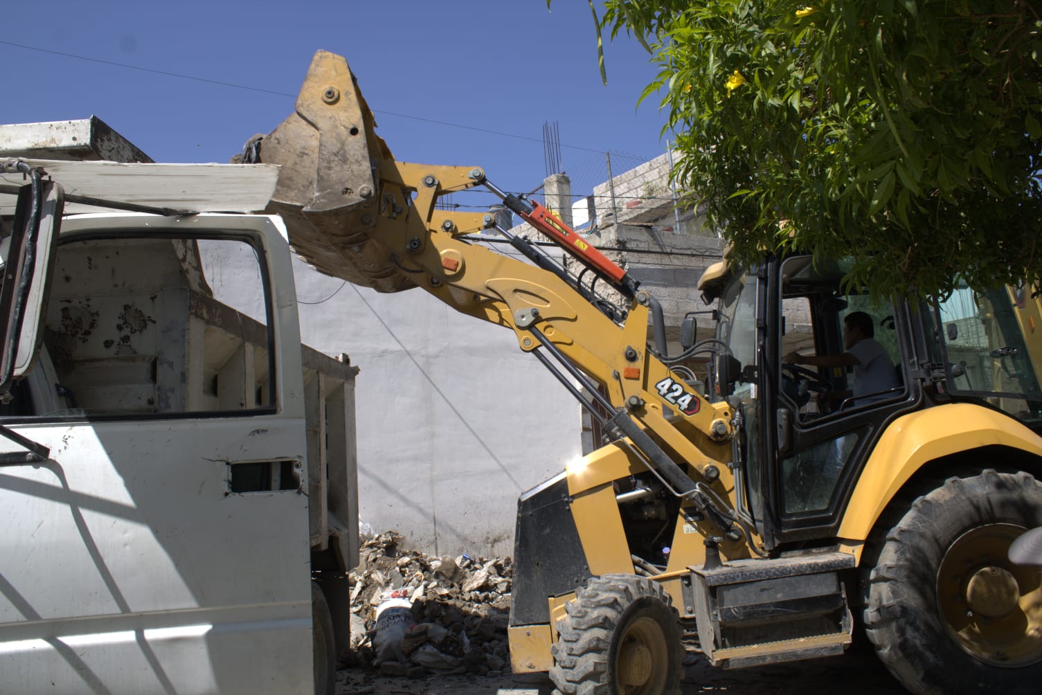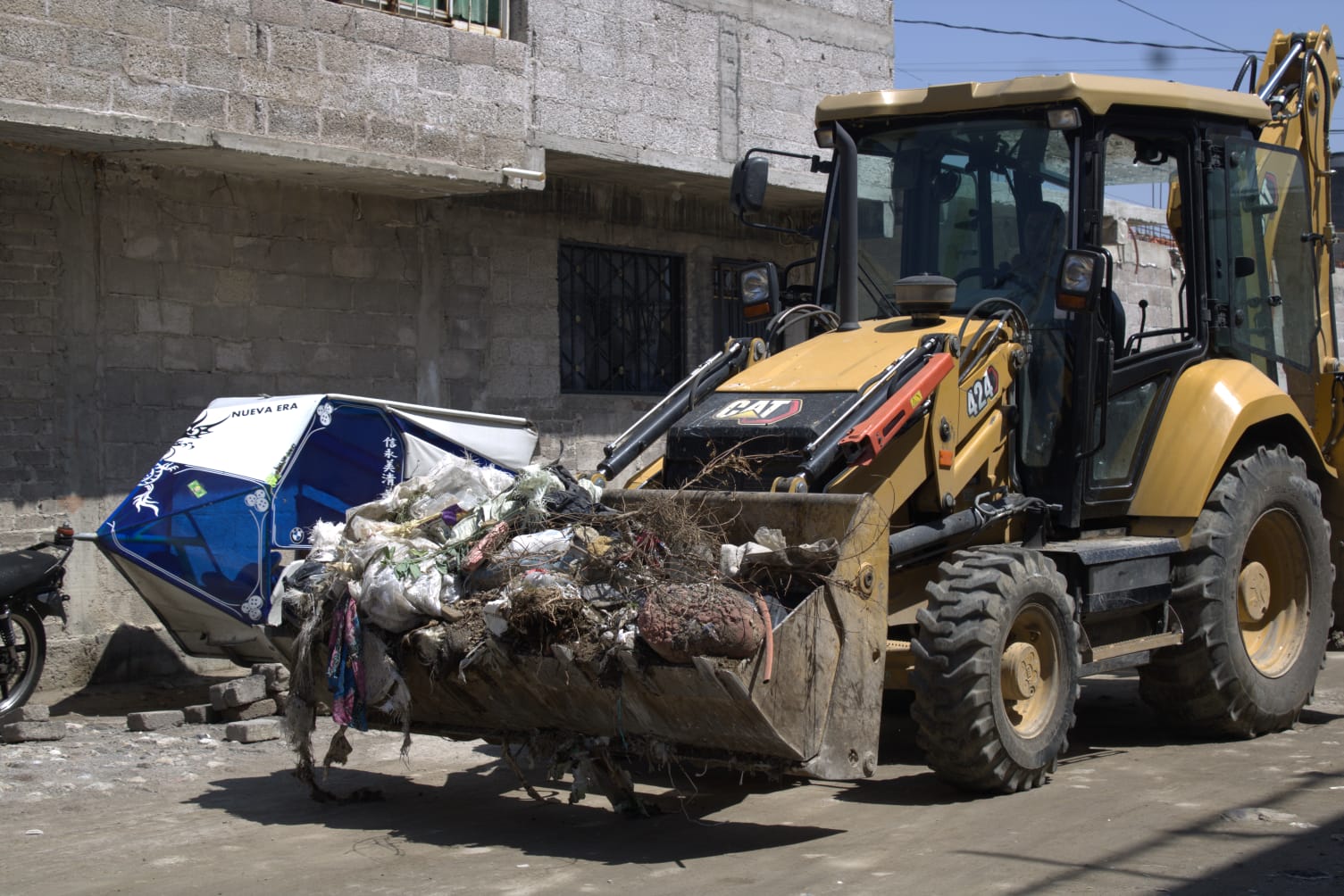 Además de los 5 camiones de volteo, hoy contaron con el apoyo de una retroexcavadora y un minicargador “Bobcat”, además de palas, escobas y otras herramientas.