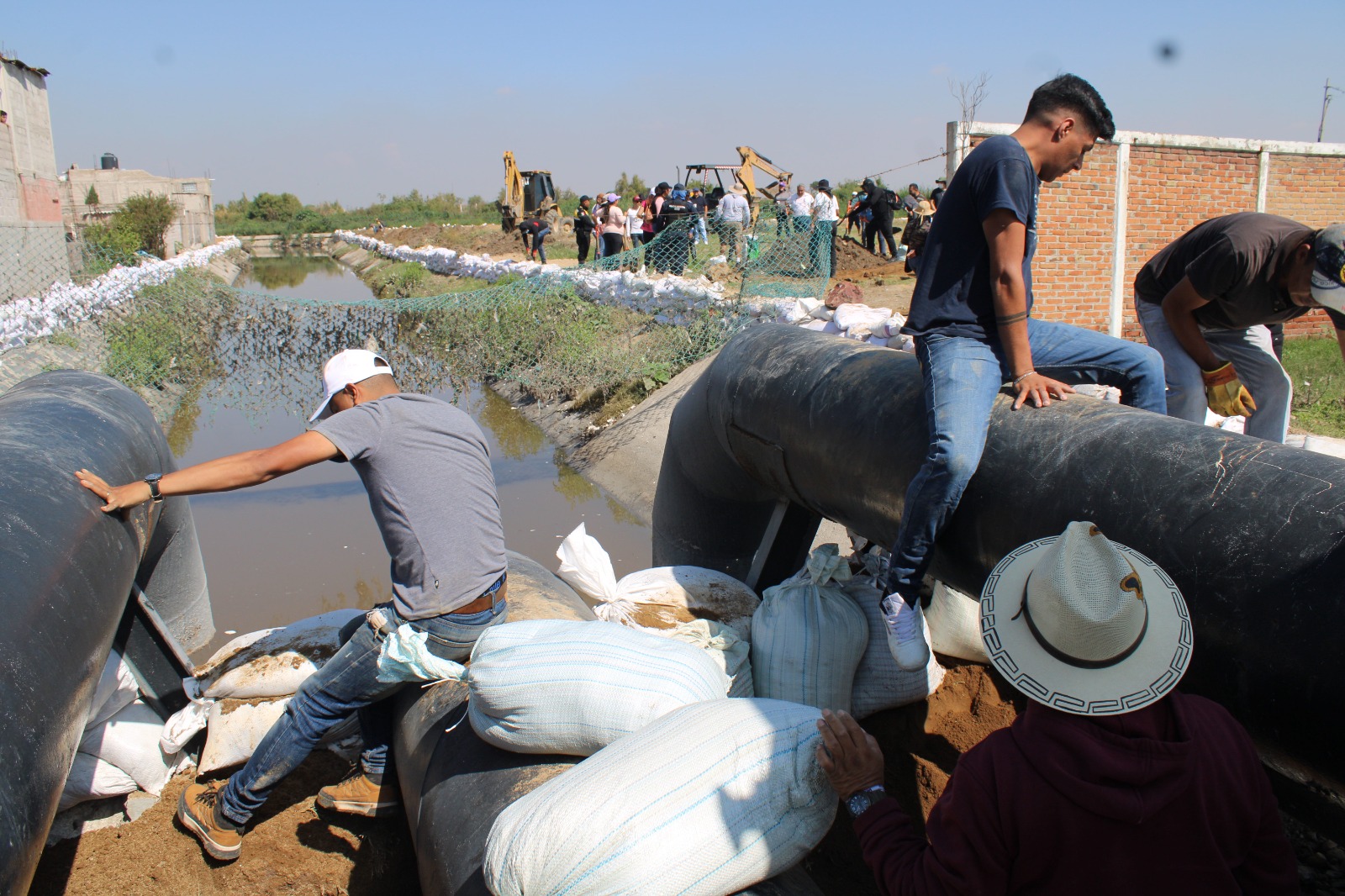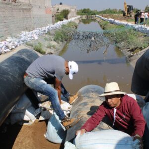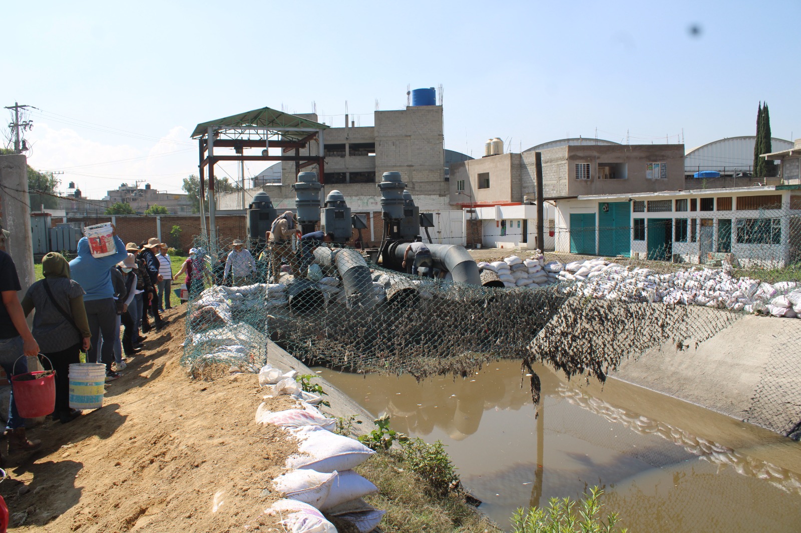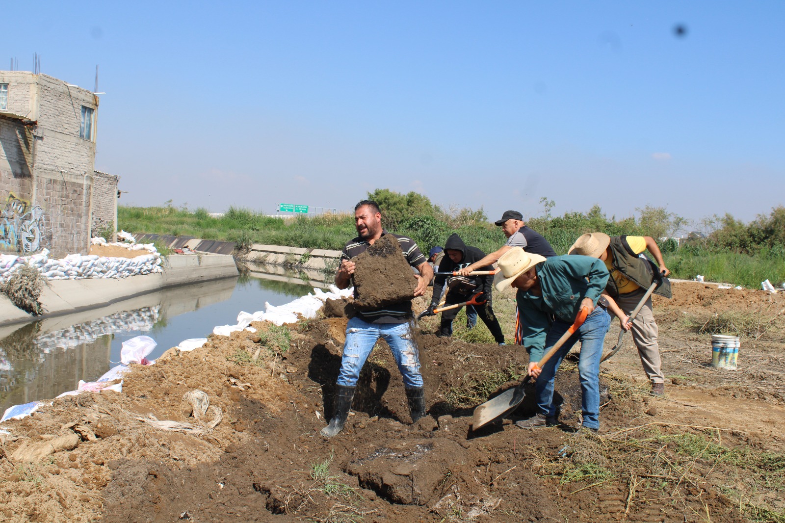 GOBIERNO DE CHIMALHUACÁN MANTIENE JORNADA DE LIMPIEZA Y SEGURIDAD EN ZONA AFECTADA POR DESBORDAMIENTO DE DREN