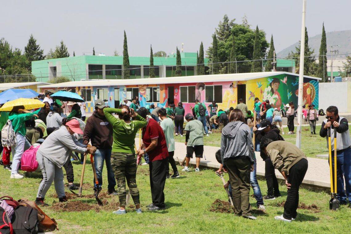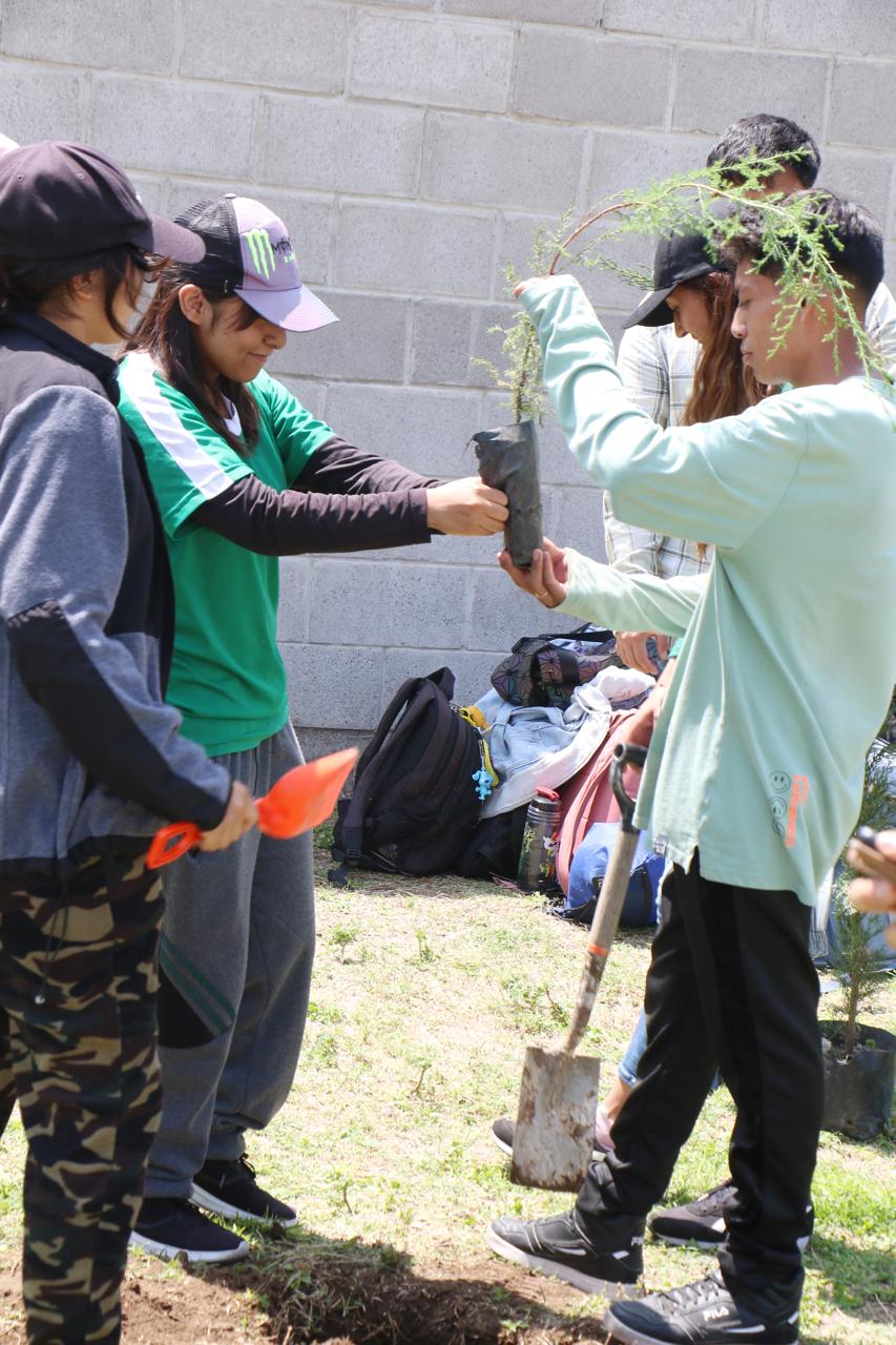 La de aquí se realizó por iniciativa del TESCHI. El Gobierno Municipal, en colaboración con la Coordinación General de Conservación Ecológica de la Secretaría de Medio Ambiente y Desarrollo Sustentable del Estado de México, se dio a la tarea de sembrar hoy más de 250 árboles y plantas en esta institución.