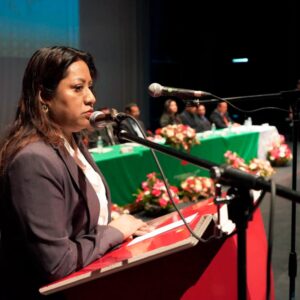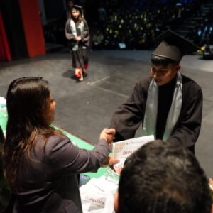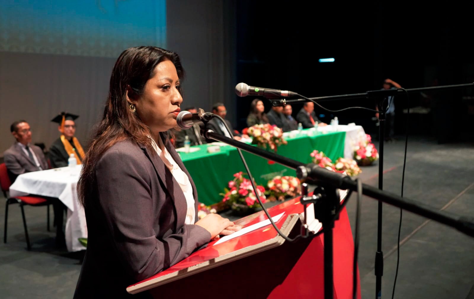 “Hoy reconocemos el trabajo y esfuerzo de los graduados. Solo ustedes, sus familias y profesores saben el esfuerzo que les costó culminar sus estudios, pues trabajaron en equipo durante este tiempo. Quiero felicitarlos y les deseo todo el éxito, los invito a seguir esforzándose. También quiero felicitar a sus padres, sé que hoy sienten una gran satisfacción al acompañarlos a este último pase de lista. Enhorabuena”, dijo la Presidenta de Chimalhuacán a los asistentes.