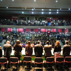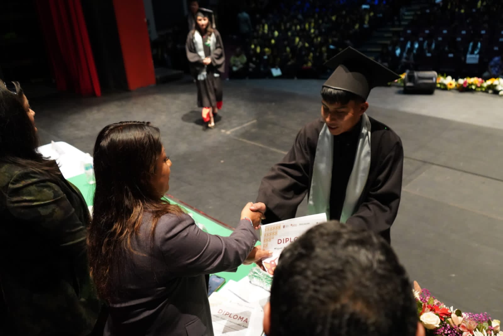 Ante un Teatro Auditorio “Acolmiztli Nezahualcóyotl” colmado de asistentes y júbilo por la conquista de un peldaño más en la educación media superior, la Presidenta Municipal, Xóchitl Flores Jiménez, felicitó a los alumnos de la generación 2021-2024 del Colegio de Bachilleres del Estado de México (COBAEM) Plantel 03 Chimalhuacán, por su graduación.