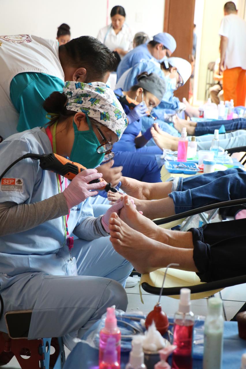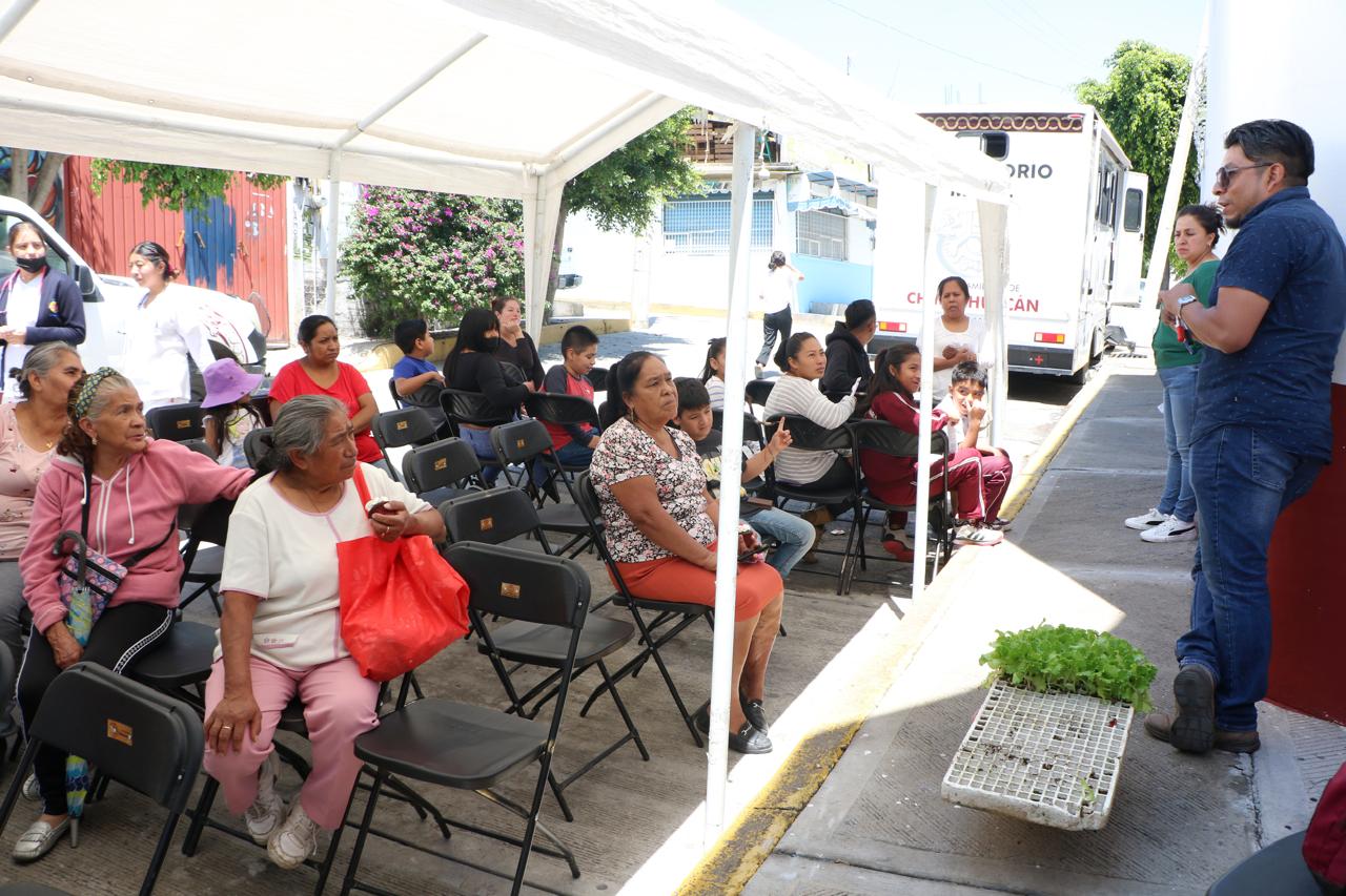 A vecinas y vecinos de todas las edades, particularmente de la tercera edad, personal de la Dirección de Salud Municipal proporcionó hoy servicios de limpieza dental, odontología, podología, Papanicolau, lavado de oídos y aplicación de pruebas PCR (Polymerase Chain Reaction o Reacción en Cadena de la Polimerasa), consistente en un diagnóstico de detección rápida de algunas enfermedades.