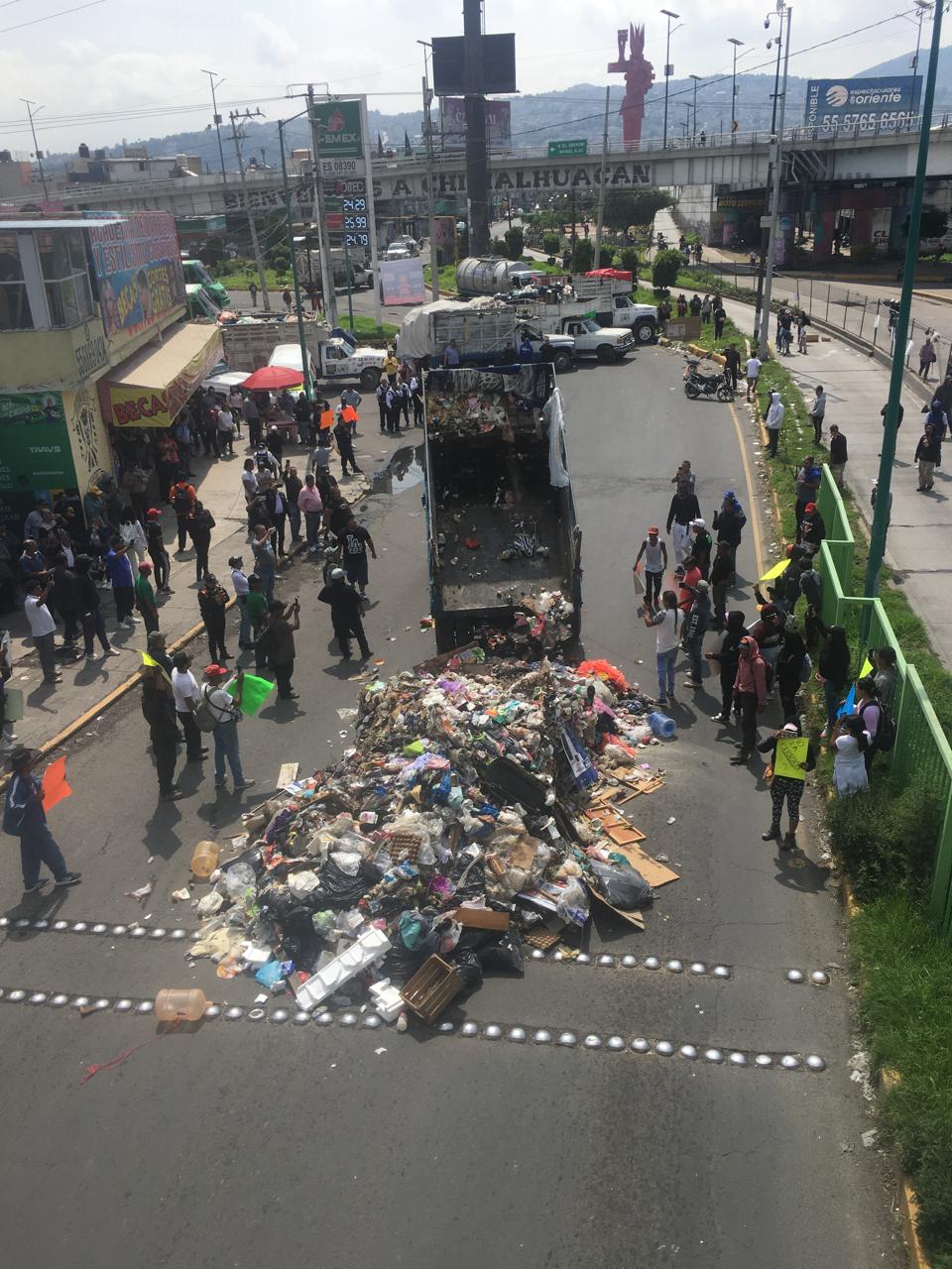 Los recolectores particulares exigieron a las autoridades municipales que se les asegure un sitio para que viertan sus residuos sólidos, luego de que les fue negado seguir tirando de manera irregular en un sitio de disposición final de la Ciudad de México; sin embargo, dicho grupo de recolectores particulares tiró en el transcurso de la tarde la basura de sus camionetas en el punto del bloqueo, lo cual afectó la movilidad de la población en el área.