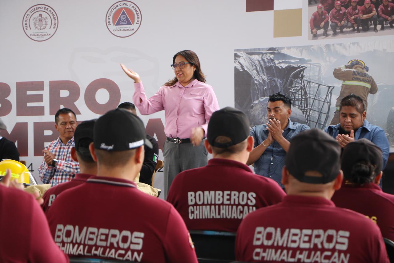Reconoció que la labor de los bomberos y bomberas es fundamental para la seguridad y el bienestar de la comunidad. “Los bomberos, con su valentía y compromiso inquebrantable, están en la primera línea de defensa contra el fuego, el peligro y el desastre”, agregó, al tiempo que reconoció la intervención del Heroico Cuerpo de Bomberos de Chimalhuacán en diferentes acontecimientos, tales como: