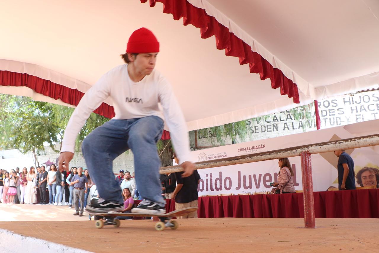 En un ambiente colmado de propuestas juveniles, así como de expresiones artísticas y deportivas –como baile y skateboarding–, el H. Cabildo de Chimalhuacán, encabezado por la Presidenta Municipal, Xóchitl Flores Jiménez, llevó a cabo el Tercer Cabildo Juvenil en las instalaciones del Skatepark San Pedro, ubicado en el Complejo Cultural y Recreativo Acolmiztli Nezahualcóyotl (CCRAN), en la Cabecera Municipal.