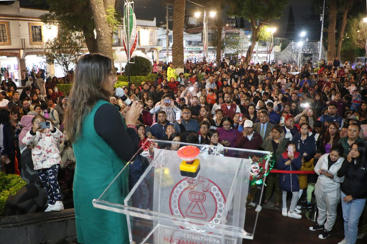 La Alcaldesa Xóchitl Flores Jiménez encendió esta tarde los adornos conmemorativos de las Fiestas Patrias del mes de septiembre con un llamado a ser cada vez mejores ciudadanos para hacer de Chimalhuacán, el Estado de México y del país lugares cada vez más limpios y bellos.