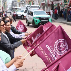 Con la finalidad de mejorar los servicios que ofrece el H. Ayuntamiento de Chimalhuacán en cuanto a la recolección de basura, así como la administración y operatividad de otras direcciones y departamentos como Salud, Seguridad, Obras Públicas, Vía Pública, Mercados, Servicio Militar, Juzgados Cívicos, Ingresos, entre otros, la Presidenta Municipal, Xóchitl Flores Jiménez, entregó nuevo parque vehicular a los titulares de las mismas.