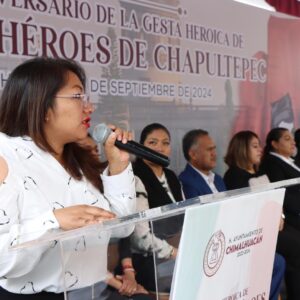 Durante la ceremonia por el CLXXVII Aniversario de aquella Gesta Heroica, la Secretaria del H. Ayuntamiento de Chimalhuacán expresó que los nombres de los Niños Héroes (Agustín Melgar, Francisco Márquez, Fernando Montes de Oca, Juan de la Barrera, Vicente Suárez y Juan Escutia) quedaron grabados en la historia de México como sinónimos de valor y patriotismo. “La historia nos cuenta que estos jóvenes, con edades entre los 13 y 19 años, enfrentaron al enemigo con una determinación y un valor que han dejado huella imborrable en la memoria colectiva de México”, expresó la Secretaria del Ayuntamiento.