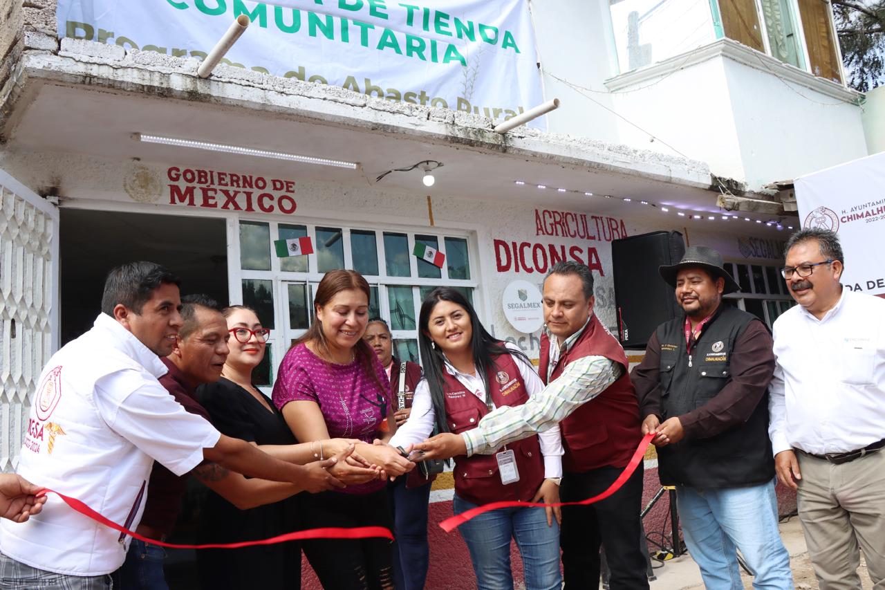 Con el objetivo de facilitar el acceso físico y económico a productos alimenticios de calidad en localidades marginadas, autoridades del Programa de Abasto Rural de Diconsa y del Gobierno Municipal de Chimalhuacán inauguraron la primera Tienda de Abasto Social Diconsa en la calle Dalia, Corte San Isidro, en los Ejidos de Santa María Chimalhuacán. El año pasado también se inauguró una tienda Liconsa en este lugar, a través de la cual diariamente se suministran 280 litros de leche a más de 150 familias de la comunidad.