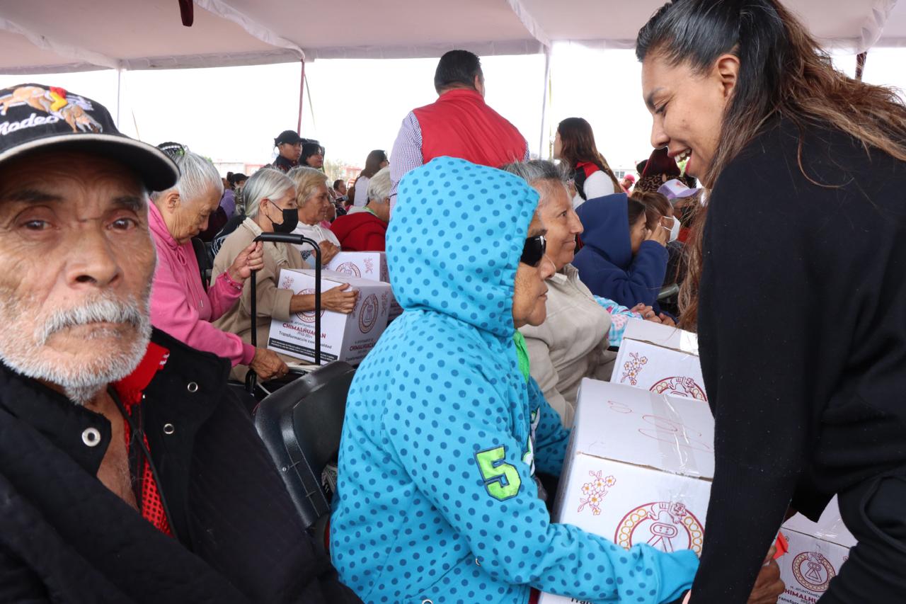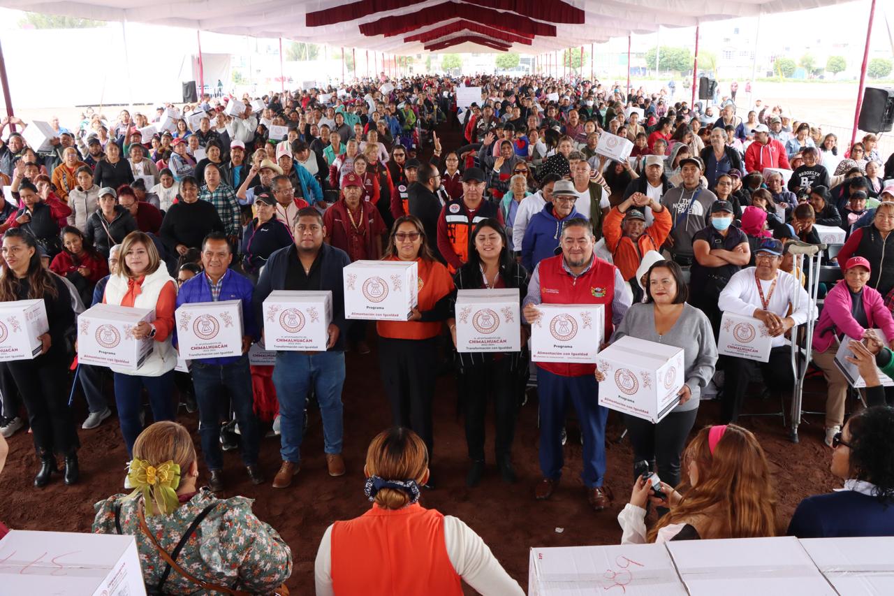 Con el objetivo de favorecer el acceso a los alimentos a las familias de Chimalhuacán que se encuentren en condición de vulnerabilidad o no tienen acceso a una alimentación nutritiva y de calidad, el Gobierno de Chimalhuacán que encabeza la Presidenta Municipal Xóchitl Flores Jiménez, este día entregaron más de 2 mil canastas alimentarias del Programa “Alimentación con Igualdad” en el Deportivo Herreros.