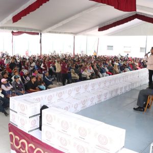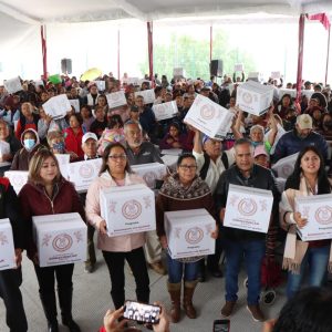 La entrega tuvo lugar en la “Policlínica”, del Barrio San Isidro de Ejidos de Santa María, en donde se congregaron las familias provenientes de comunidades como Portezuelos, Corte San Isidro, La Joya, Corte la Palma, Escalerillas, Corte Lomas de San Pablo, Copalera, Totolco, Tepenepantla, Chocolin, Lomas de Chimalhuacán, entre otras.